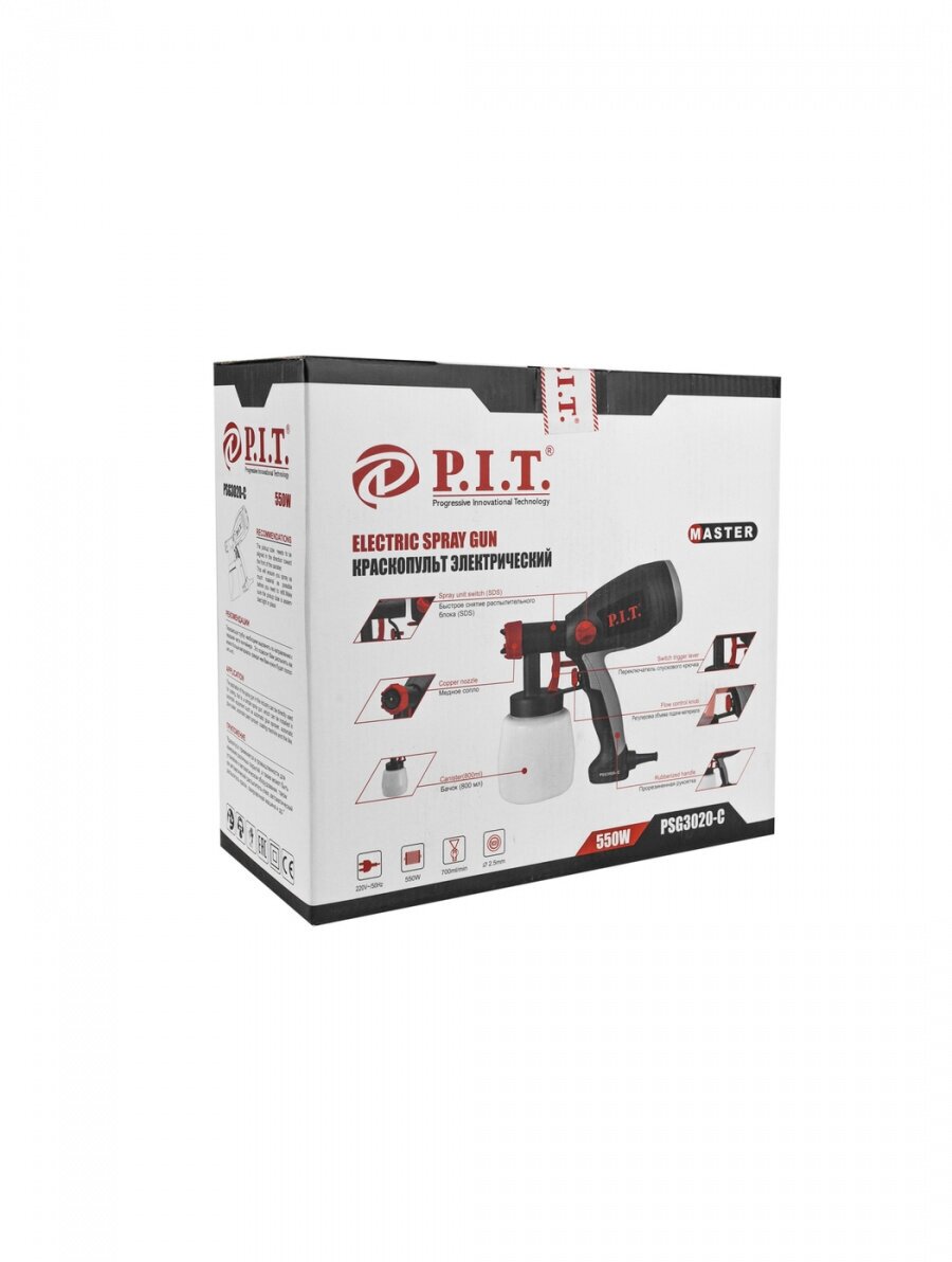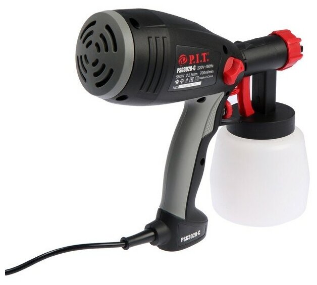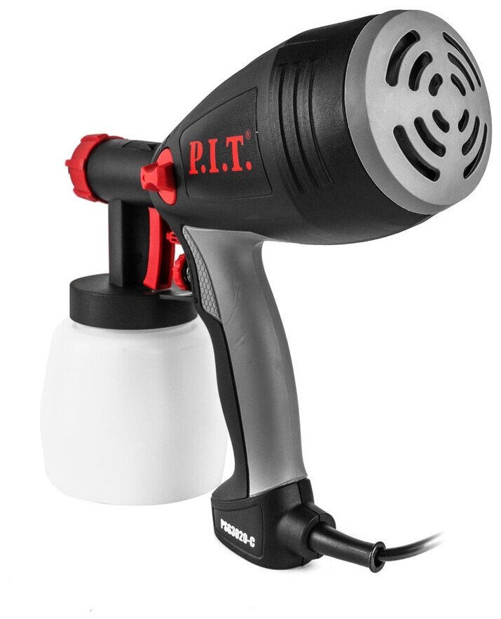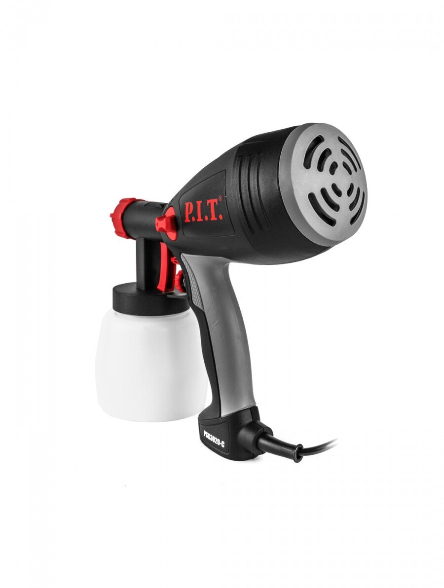 Краскораспылитель P.I.T. мастер PSG3020-C служит для окрашивания небольших поверхностей. Его конструкция состоит из электродвигателя с компрессорным механизмом, подающим воздух к форсунке. Наличие специального регулятора позволяет изменять расход воздуха и распыляемого материала. Бачок краскораспылителя располагается снизу, что открывает лучший обзор рабочей области.