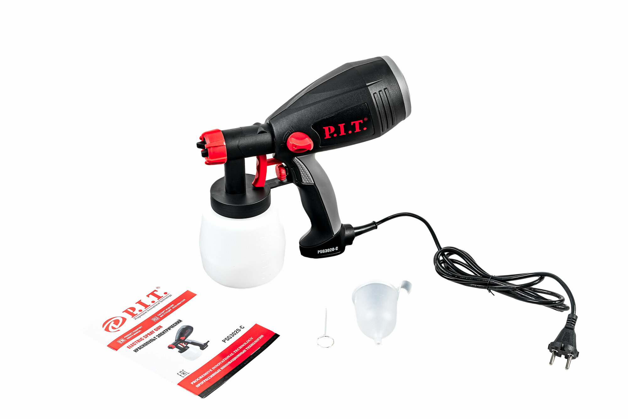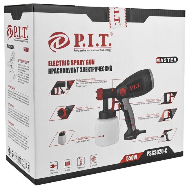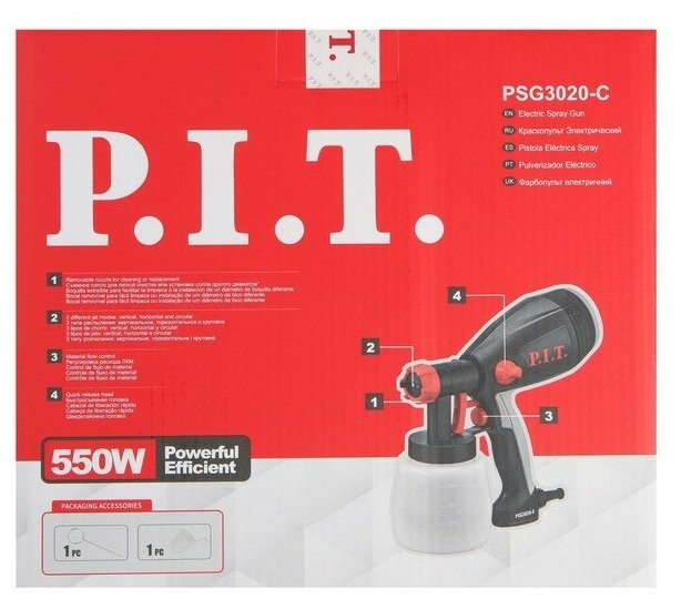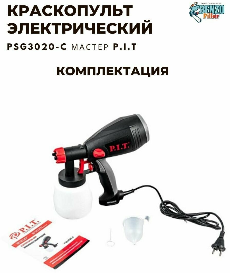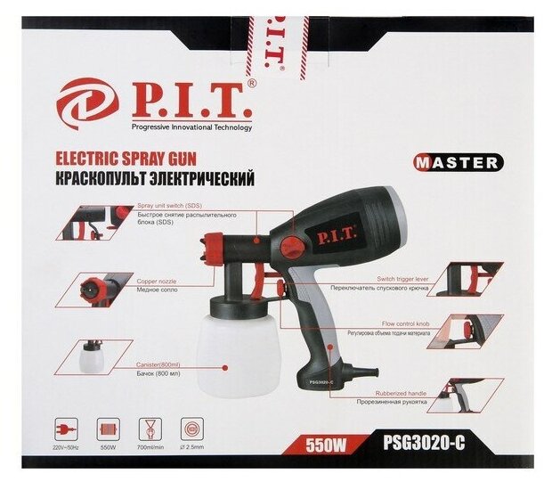 Краскораспылитель P.I.T. мастер PSG3020-C служит для окрашивания небольших поверхностей. Его конструкция состоит из электродвигателя с компрессорным механизмом, подающим воздух к форсунке. Наличие специального регулятора позволяет изменять расход воздуха и распыляемого материала. Бачок краскораспылителя располагается снизу, что открывает лучший обзор рабочей области.