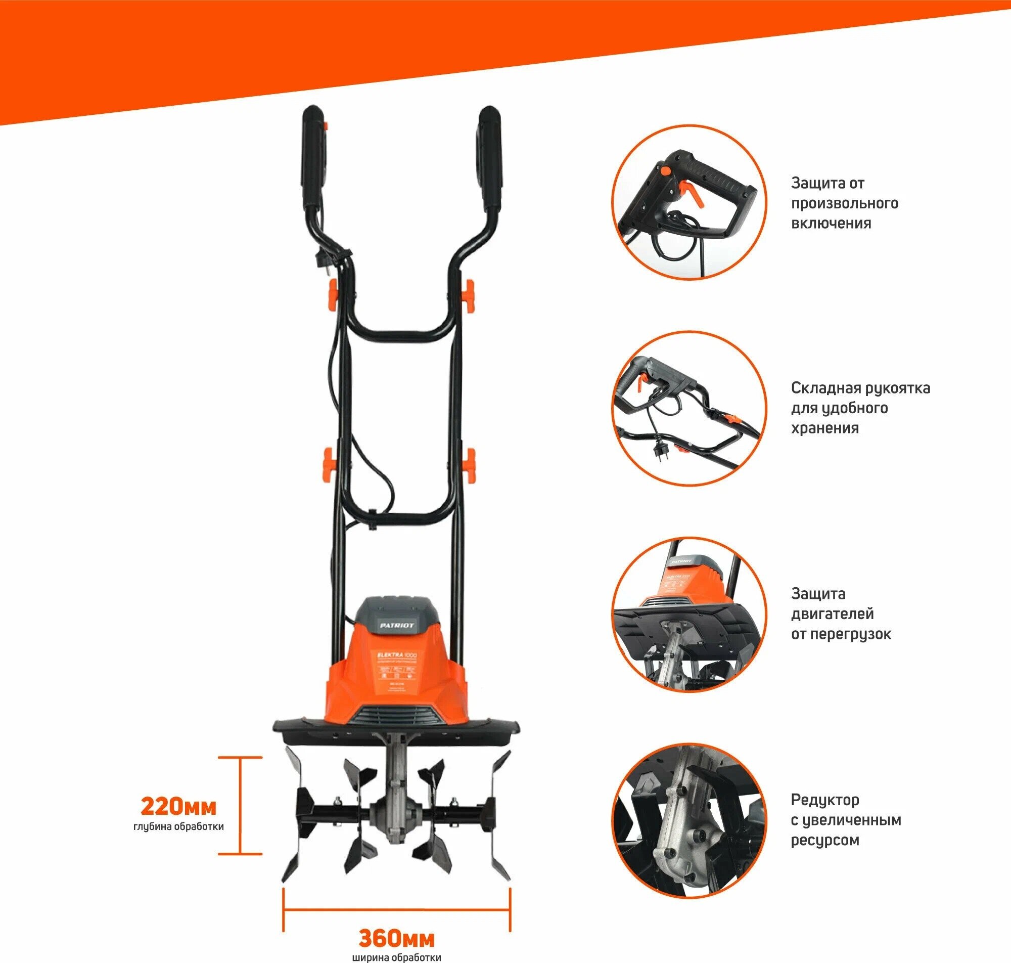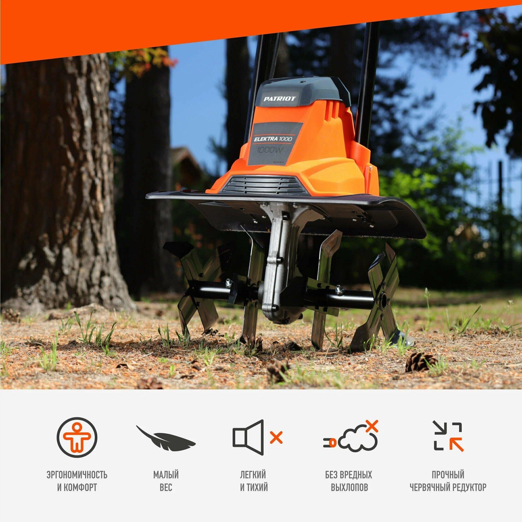 Elektra 1000 - легкий электрический культиватор, предназначенный для рыхления и культивации почвы в закрытых помещениях теплиц и на садовом участке. Несмотря на малый вес, культиватор оснащен двигателем на 1кВт и прочным червячным редуктором. Комфорт в работе обеспечивают удобные эргономичные рукоятки. Для защиты от случайного старта пусковой курок снабжен предохранительной кнопкой. Благодаря компактным размерам культиватор займет в гараже не больше места, чем обычная лопата. Преимущества: · Тихая работа; · Без вредных выхлопов; · Малый вес и компактные размеры; · Прочный червячный редуктор; · Удобные эргономичные рукоятки; · Система защиты от случайного включения; · Крючок для провода удлинителя; · Простота ухода и замена фрез.