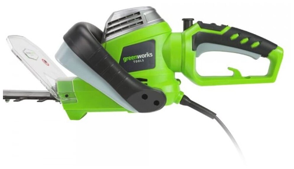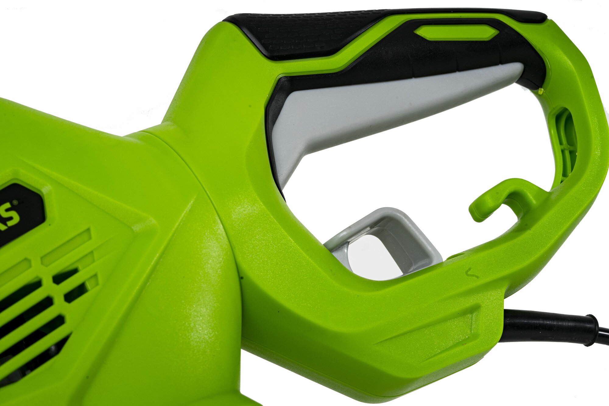 Двигатель мощностью 700W оснащен системой защиты при заклинивании лезвия. Шаг среза 18 мм. Для безопасной работы кусторез оснащен кнопкой-предохранителем от случайного включения, а также щитком для защиты рук от порезов. Обратите внимание, что вся техника Greenworks имеет расширенную гарантию, в отличии от остальных производителей садовой техники, и составляет 3 года.