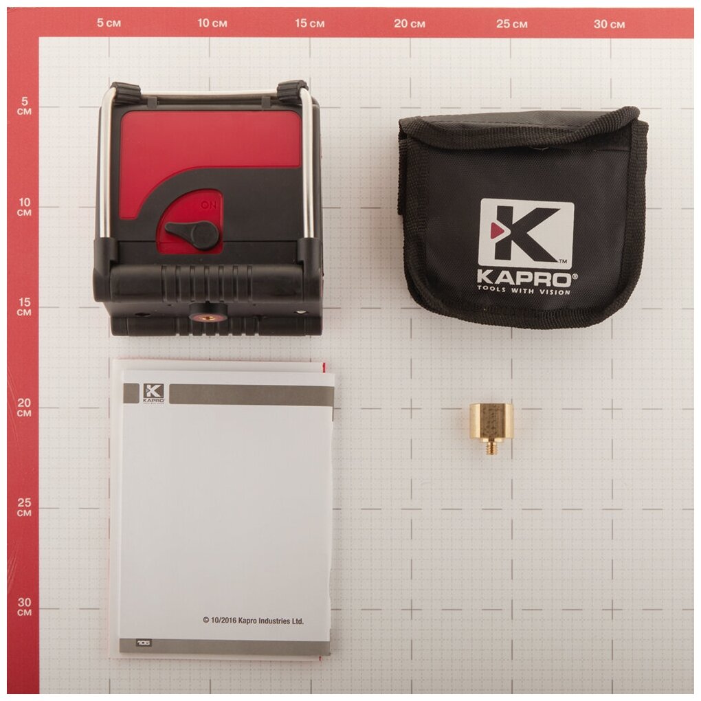 Построитель лазерных плоскостей Капро 873 позволяет решать широкий спектр задач, связанных с ремонтом и отделкой как внутри помещений, так и снаружи. Уровень отлично подходит для укладки керамической плитки, оклейки стен обоями, установки дверей, монтажа оборудования и т. д. Лазерный нивелир очень прост в эксплуатации, работа с ним не требует специальной подготовки. Проецирует 1 горизонтальную линию и 2 вертикальные линии. Особенности: Лазерный нивелир KAPRO 873 Prolaser Vector проецирует три линии - одну горизонтальную и две вертикальные, включение/выключение осуществляется одной кнопкой. Маятниковый компенсатор обеспечивает самовыравнивание лазерного нивелира, что значительно упрощает установку прибора в горизонт. Прибор обладает точностью 0,2 мм/м - это достаточно высокая точность для данной категории. Яркие лазерные лучи хорошо видны на расстоянии до 30 метров от прибора. Есть режим работы с приемником лазерного излучения, который увеличит дальность улавливания луча до 50 м. Самовыравнивание осуществляется при помощи маятникового компенсатора в диапазоне +/- 5 градусов. При превышении угла наклона, выходящего за пределы диапазона выравнивания, срабатывает система звуковой и визуальной сигнализации. Функцию самовыравнивания можно отключить. Возможность разметки наклонных линий. Питание прибора осуществляется при помощи трех стандартных батарей на 1,5 В. Корпус изготовлен из прочного пластика и соответствует классу пыле-влагозащиты IP54. Такие характеристики позволяют не опасаться за работу лазерного уровня даже при использовании в условиях повышенной запыленности и влажности. Прочные складные стальные ножки легко регулируются, позволяя установить прибор под углом и отрегулировать его по высоте. Комплектация: лазерный уровень, переходник на 5/8, сумка Технические характеристики