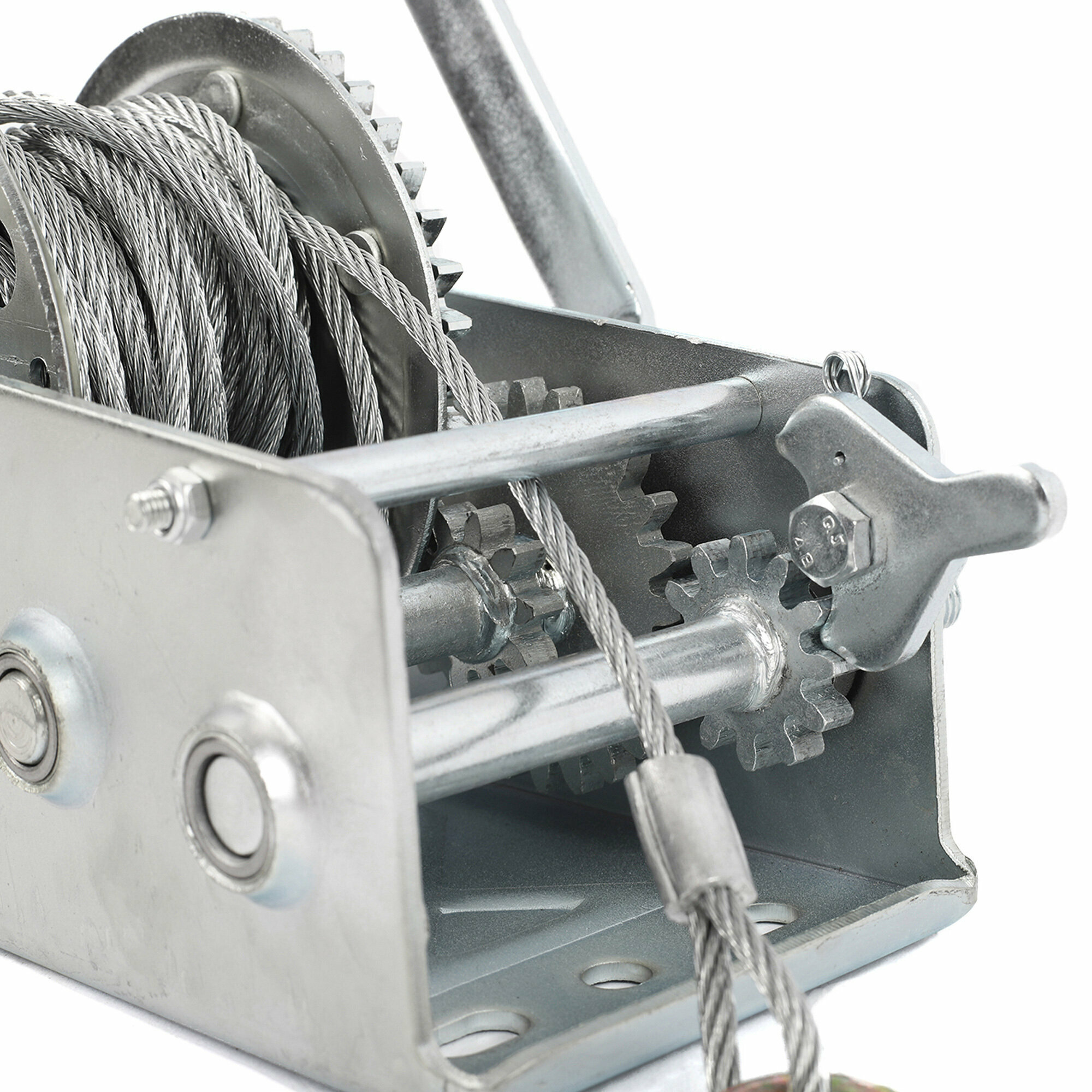 Лебедка ручная барабанная Patriot WH 1100B — устройство для работы на строительных площадках, помощник на бездорожье, пригодится для транспортировки грузов. Не требует дополнительного питания или других вспомогательных приборов. - Легкая и надежная лебедка для перемещения грузов.- Крюк изготовлен из специальной неломкой стали- Увеличенный диаметр барабана- Электрилитическое покрытие обеспечивает надежную защиту от коррозии- Крепежные узлы изготовлены из высококачественной стали и закалены- Применяется для горизонтального перемещения грузов- Простой механизм управления- Не требует специального обслуживания. ХарактеристикиМаксимальная нагрузка 1100.0(кг)Максимальная нагрузка без сложного блока 550.0(кг)Максимальная нагрузка со сложным блоком 1100.0(кг)Защитная муфта НетДлина цепи / троса 8.0(в м)Диаметр цепи / троса 5(мм)Предохранительный тормоз НетТрос в комплектеДаБлок с крюком в комплектеДаАксессуары в комплектенетВес нетто 4.6 (кг)Марка PATRIOTТип продукта Ручная лебедкаГарантия производителя 1(лет)Страна производства Китай