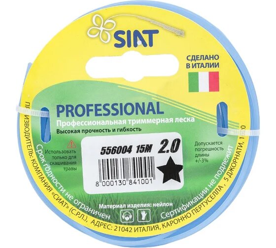 Леска SIAT 556004 применяется при работе триммерами. Является режущим элементом и заправляется в триммерную головку. Леска различается по диаметру и форме сечения. Правильный подбор толщины лески и ее сечения для определенных работ существенно влияет на скорость кошения и износ лески. Леска имеет высокую износостойкость и отличную режущую способность благодаря острым краям лески. Подходит для подрезки толстых сорняков, лопухов, легко справится с зарослями жесткой травы. Выполнен из качественных материалов, имеет длительный срок эксплуатации.