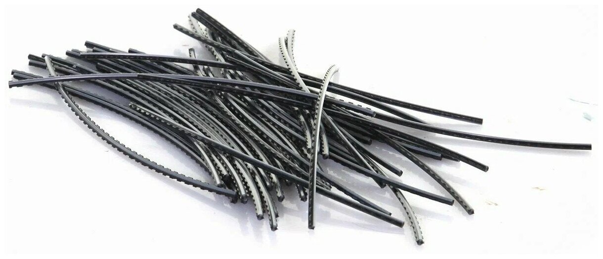 Струна твердая, на поверхности нанесены зубцы. Крепление оснастки не предусматривает ее наматывания, а заключается в специальной крепежной фиксации. Зубчатая форма струны усиливает ее режущие свойства, придает прочность и износостойкость изделию.