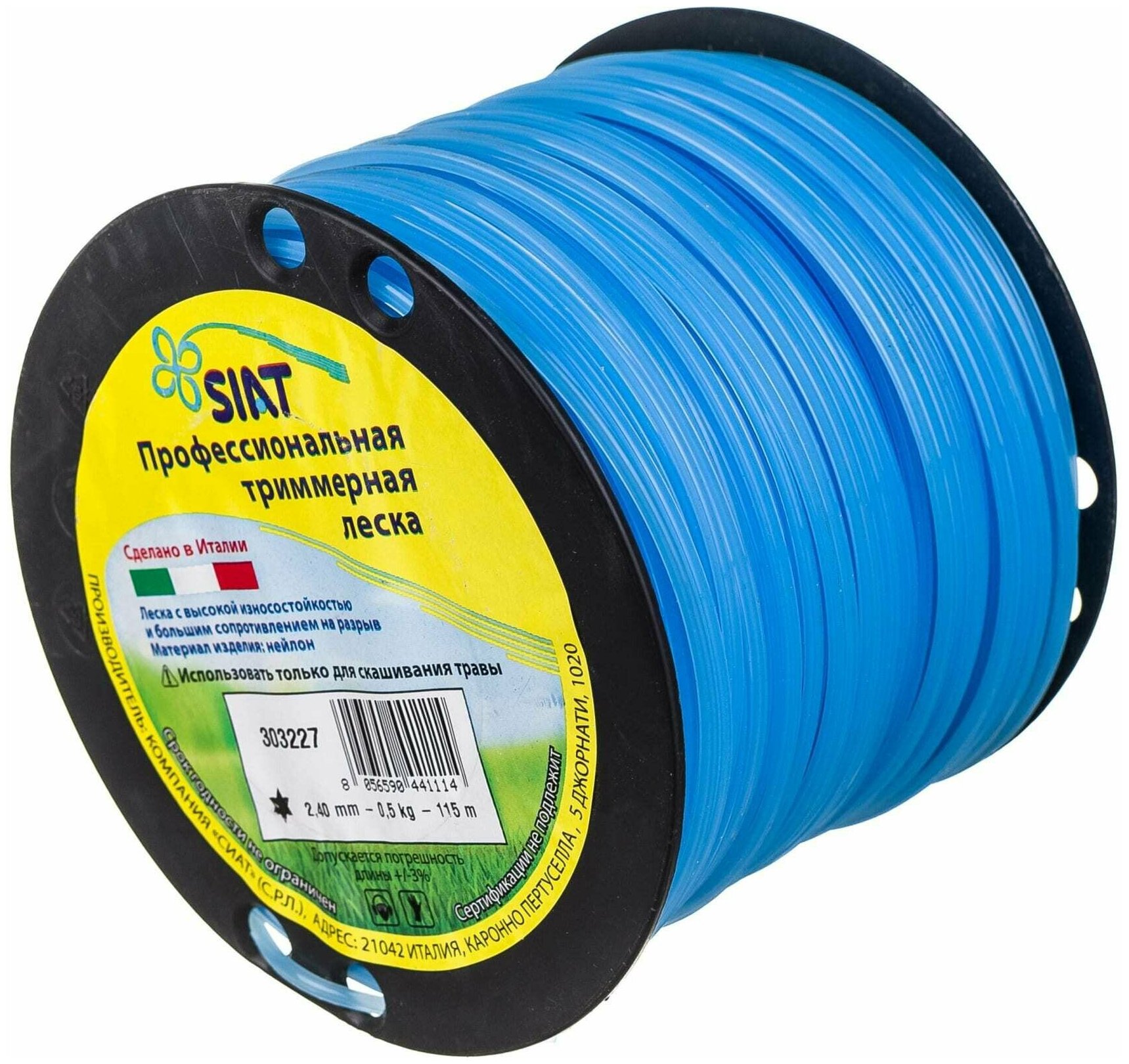 Леска SIAT 303227 применяется при работе триммерами. Является режущим элементом и заправляется в триммерную головку. Леска различается по диаметру и форме сечения. Правильный подбор толщины лески и ее сечения для определенных работ существенно влияет на скорость кошения и износ лески. Корд представляет собой мононить с сечением в виде звезды, имеет высокую износостойкость и отличную режущую способность благодаря острым краям лески. Подходит для подрезки толстых сорняков, лопухов, легко справится с зарослями жесткой травы. Выполнен из качественных материалов, имеет длительный срок эксплуатации.