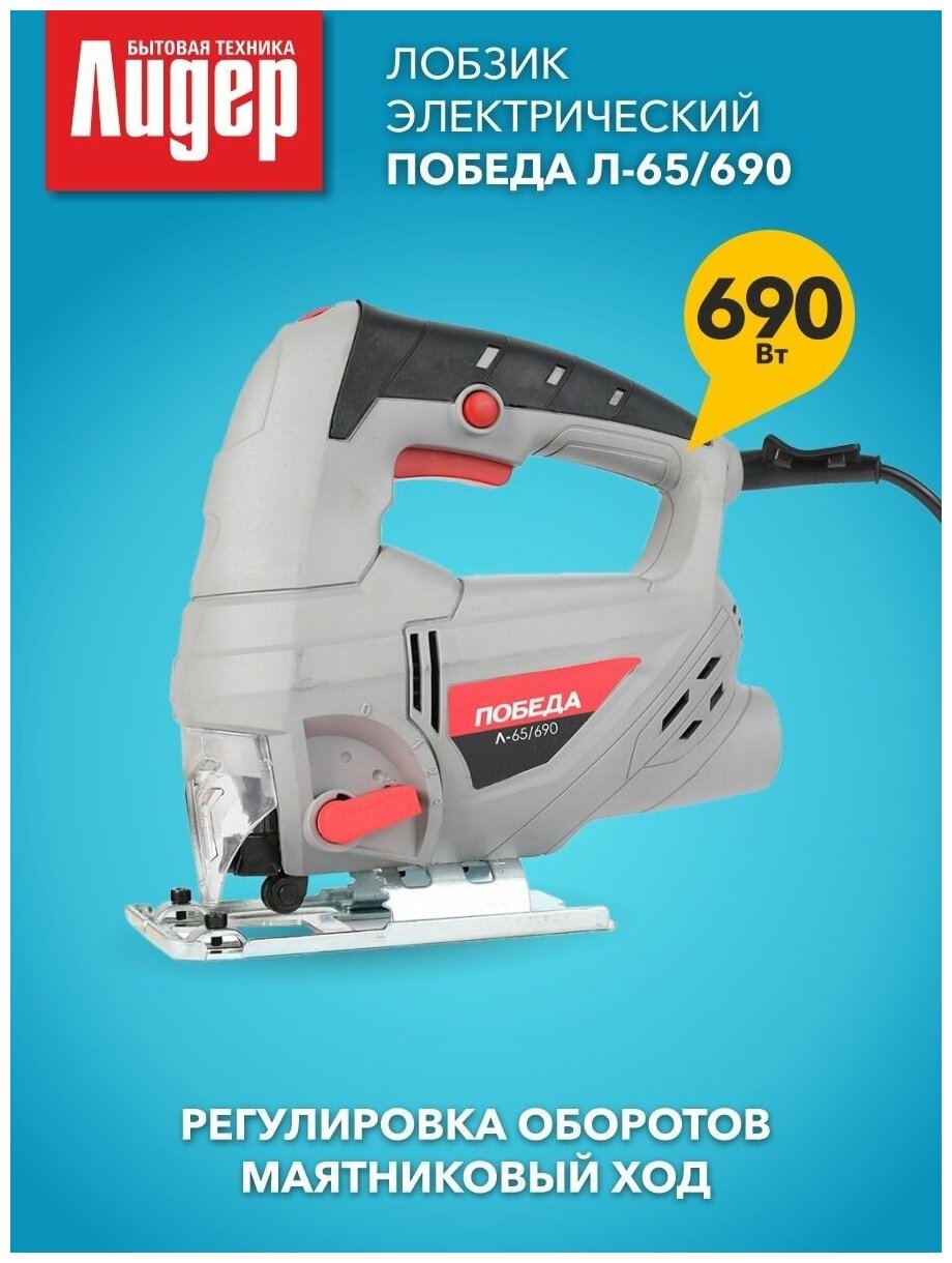 Преимущества: - Инструмент имеет 4 ступени маятникового хода, что позволяет осуществлять как быстрый черновой, так и аккуратный чистовой распил; - Наличие патрубка пылеотвода способствует поддержанию чистоты на рабочем месте; - Конструкция корпуса с литой подошвой, дуговой нескользящей рукояткой и защитным кожухом гарантирует удобство и безопасность пользователя. Предназначен для распиливания твердых и мягких пород древесины, ДВП, ДСП, фанеры, металла и пластмассы. Мощность: 690 Вт; Глубина реза древесина/алюминий/металл: 65/10/6 мм; Число ходов пилки: 0 - 3000 в минуту; Тип хвостовика пилки: T; Амплитуда хода пилки: 18 мм; Регулировка маятникового хода: 4 позиций; Регулировка скорости: 6 положений; Регулировка угла наклона: да; Вес: 1,65 кг.
