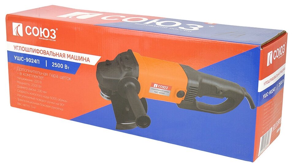 Мощный и производительный инструмент с улучшенным управлением. Инструмент эффективен в любых задачах при резке, зачистке, шлифовке поверхностей изделий из металла, керамической плитки, кирпича и обладает дополнительной опцией для обработки камня. Дополнительные преимущества благодаря возможности установки боковой ручки на корпусе редуктора в 3 положениях и поворота основной рукоятки на 270 градусов. Блокировка шпинделя обеспечивает быструю смену оснастки. Оптимизированная внутренняя аэродинамическая схема и улучшенная защита от пыли сохраняет мотор от перегрева и продлевает его срок службы. Применение в конструкции четырех усиленных подшипников, конические шестерни редуктора с поверхностным упрочнением и бронированный ротор гарантируют достаточную прочность даже при интенсивной нагрузке. Эргономичный корпус из АБС-пластика, стойкий к ударам и низким температурам, оснащен задней удлиненной рукояткой с резиновой противоскользящей вставкой и боковой рукояткой обеспечивает долгую и комфортную работу в любых условиях эксплуатации и лучший контроль над инструментом. Легкий доступ к щеткам служит для удобства их замены без разборки корпуса. Безопасный включатель с фиксацией облегчает работу в непрерывном режиме и обеспечивает мгновенное отключение инструмента одним нажатием при необходимости. Уменьшенный корпус редуктора позволяет выполнять более глубокий рез. Металлический защитный кожух легко переставляется и обеспечивает безопасность труда. Удлиненный морозостойкий, не спутывающийся резиновый кабель сохраняет свою эластичность при низких температурах и обеспечивает расширенную рабочую зону. Вес инструмента в сборе без упаковки и аксессуаров: 4,4 кг. Диаметр посадочного отверстия (мм) : 22,2. Гайки для крепления диска, комплект щеток, дополнительная рукоятка, ключ, защитный кожух в комплекте.