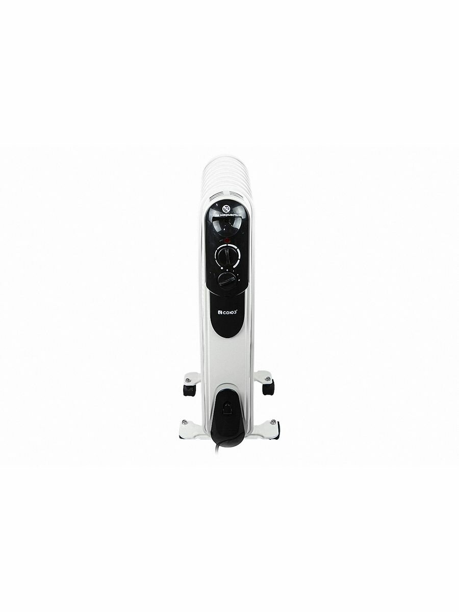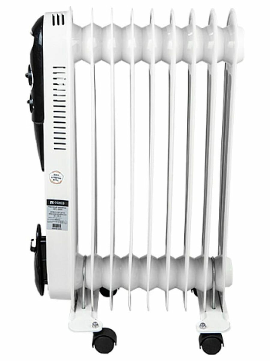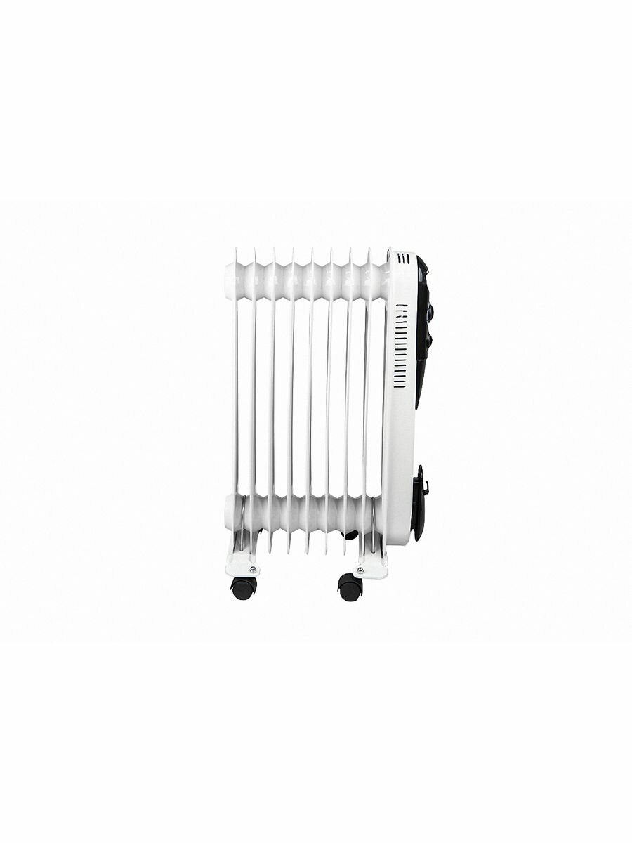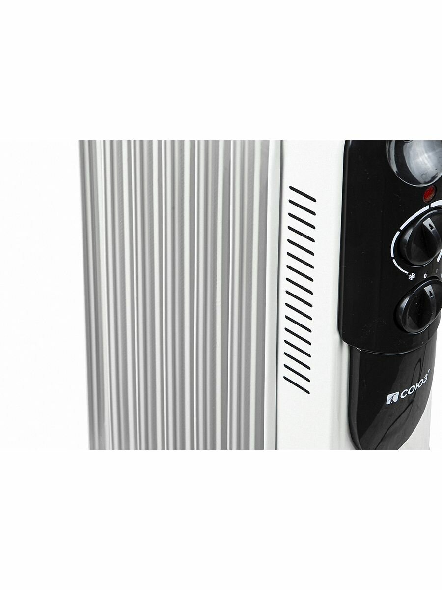 СОЮЗ МРС-2009 — современный и эргономичный масляный радиатор на девять секций — предназначен для обогрева небольших помещений площадью до 20 м2. Благодаря нагревательному элементу мощностью 2 кВт обогреватель быстро набирает рабочую температуру, а большое количество секций, позволяют эффективно и равномерно распределять тепло. Модель имеет простое и интуитивно понятное управление с помощью механических регуляторов, расположенных на передней панели. С помощью одного регулятора пользователь выбирает оптимальный режим нагрева из трех возможных: эконом/умеренный/максимальный. Назначение второго регулятора — управление настройкой термостата, задача которого — автоматическое поддержание постоянной температуры в помещении. Для визуального контроля включенного устройства предусмотрен отдельный индикатор питания, также размещенный на панели управления. Устройство оснащено термозащитой и датчиком опрокидывания, что предотвращает риск возникновения пожароопасных ситуаций. За счет компактных габар
