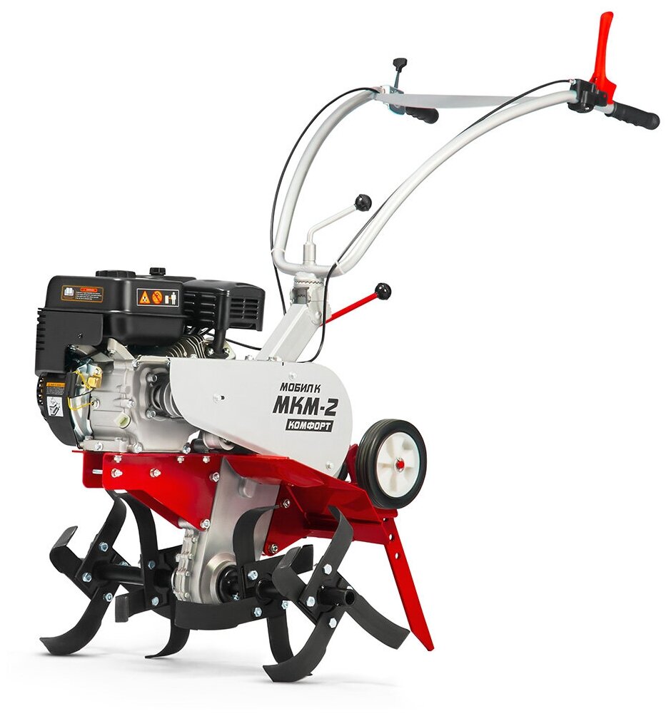 Мотоблок Мобил К МКМ-2 комфорт MBK0018402 предназначен для культивирования почвы, рыхления, междурядной обработки. Может агрегатироваться с дополнительными навесными устройствами, что позволяет повысить спектр задач. Оборудован бензиновым мотором с воздушным охлаждением. Рулевое устройство имеет регулировку по высоте для комфорта оператора любого роста. Транспортировочные колеса объединены с сошником. Они облегчают перемещение мотоблока до места хранения и работы. Переключение скоростей осуществляется вручную при помощи рычага.