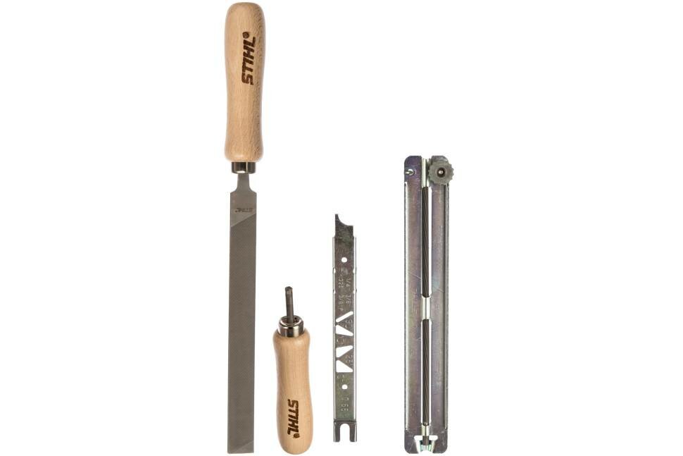 Заточной набор Stihl 56050071028 включает в себя все необходимое для заточки режущих зубьев и ограничителей глубины реза. Подходит для профессионального использования.