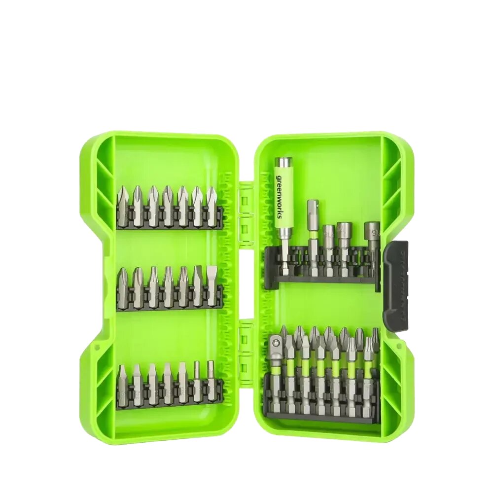 Набор бит, торцевых головок и адаптеров в кейсе Greenworks арт. 2944207, 40 шт.