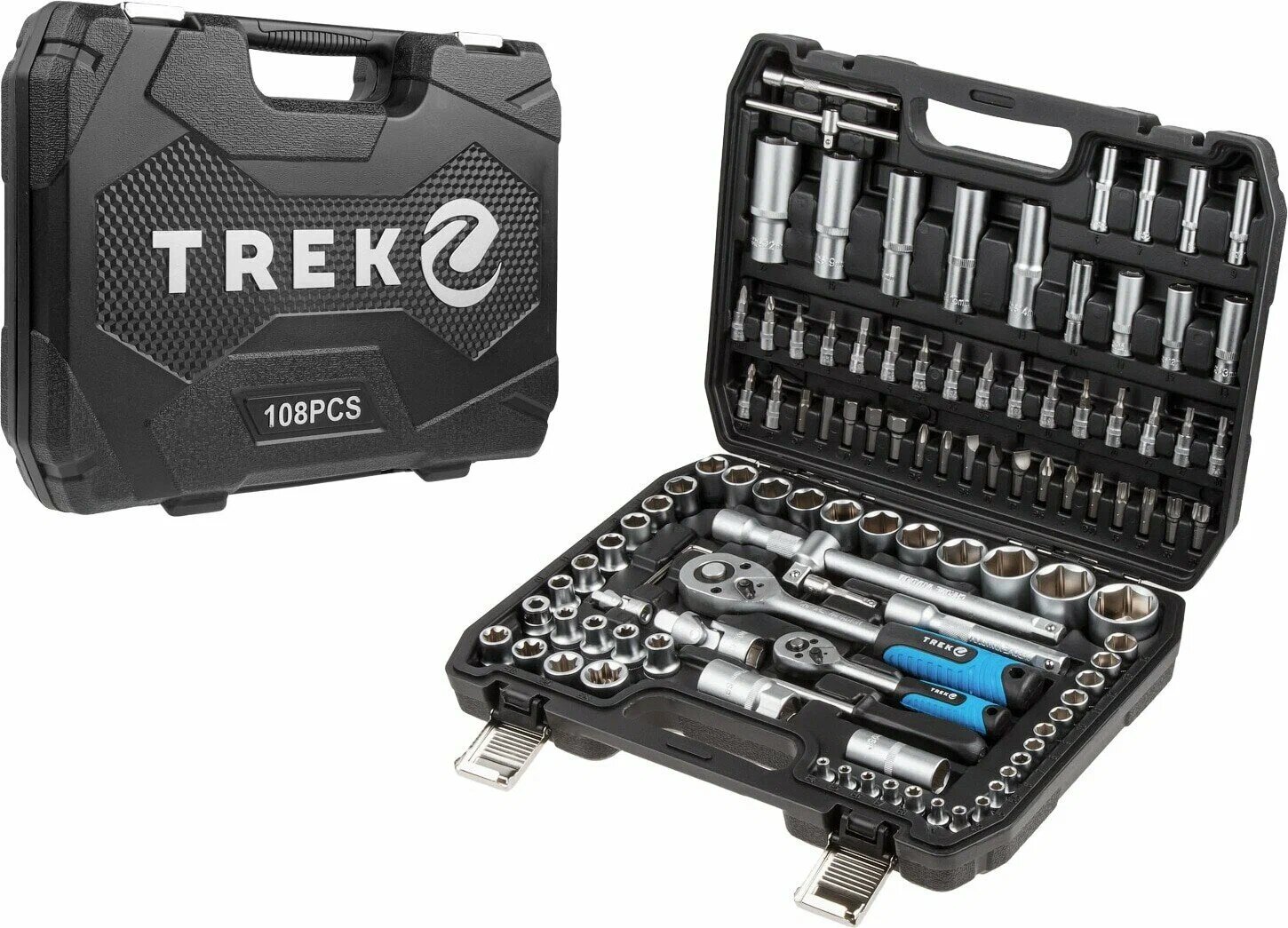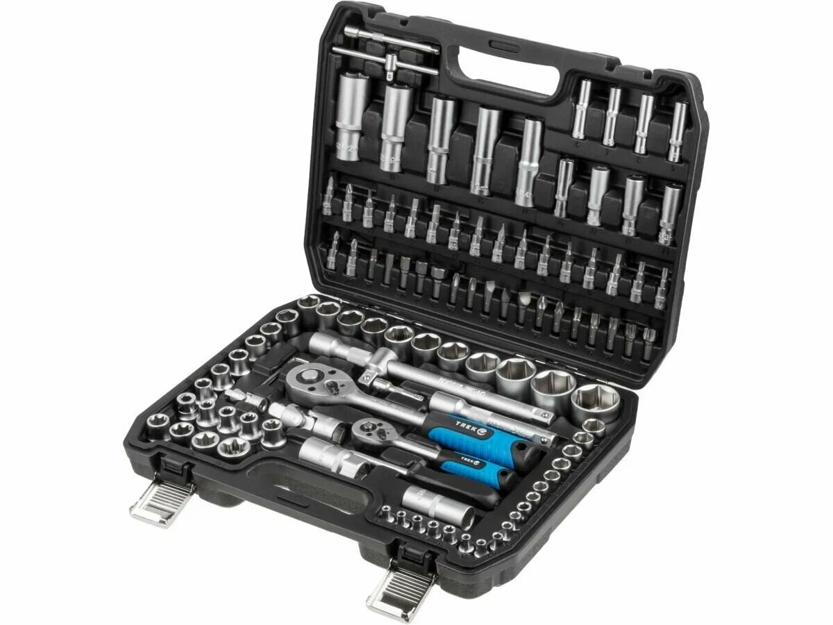 Комплектация: Головка торцевая 1/4": 4, 4.5, 5, 5.5, 6, 7, 8, 9, 10, 11, 12, 13, 14 мм; Головка торцевая длинная 1/4": 6, 7, 8, 9, 10, 11, 12, 13 мм; Головка торцевая 1/2": E10, E11, E12, E14, E16, E18, E20, E24; Головка с насадкой HEX 1/4": H3, H4, H5, H6; Головка с насадкой TORX 1/4": T8, T10, T15, T20, T25, T30; Головка с насадкой SL 1/4": SL4, SL5.5, SL6.5; Головка с насадкой PH 1/4": PH1, PH2; Головка с насадкой PZ 1/4": PZ1, PZ2; Головка торцевая 1/2": 10, 11, 12, 13, 14, 15, 16, 17, 18, 19, 20, 21, 22, 23, 24, 27, 30, 32 мм; Головка торцевая длинная 1/2": 14, 15, 17, 19, 22 мм; Свечная головка 1/2": 16, 21 мм; Насадка 5/16" HEX: H8, H10, H12, H14; Насадка 5/16" TORX: T40, T45, T50, T55; Насадка 5/16" PH: PH3, PH4; Насадка 5/16" PZ: PZ3, PZ4; Трещотка 1/4"; Удлинитель 1/4" 50 мм; Удлинитель 1/4" 100 мм; Кардан 1/4"; Вороток-отвертка 1/4" 150 мм; Вороток 1/4" с плавающей головкой 115 мм; Гибкий удлинитель 1/4"; Трещотка 1/2"; Переходник (держатель для бит) 1/2"х5/16"(HEX); Переходник 3/8"(F)х1/2"(М) с отверстием; Удлинитель 1/2" 125 мм; Удлинитель 1/2" 250 мм; Кардан 1/2"; Ключ шестигранный Г-обр: 1.5, 2, 2.5 мм; Кейс