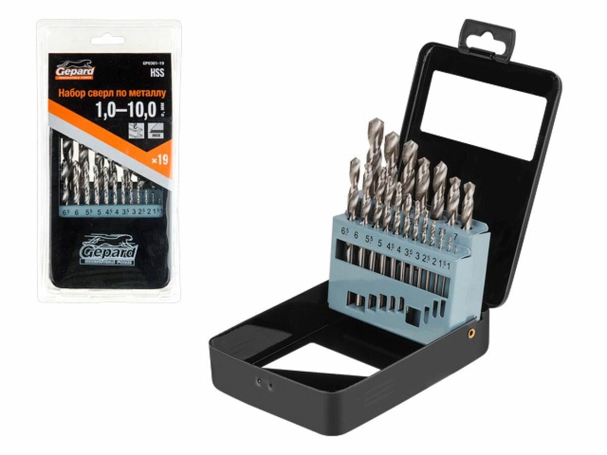 Комплектация (диаметр сверла, мм): 1,0-10,0мм (1.0; 1.5; 2.0; 2.5; 3.0; 3.5; 4.0; 4.5; 5.0; 5.5;6.0; 6.5; 7.0; 7.5; 8.0; 8.5; 9.0; 9.5; 10.0);