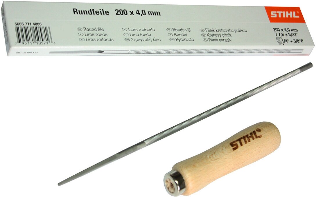 Регулярная заточка цепи позволяет продлить срок службы инструмента и гарантировать качественную работу. Для обслуживания инструмента STIHL мы предлагаем вам круглый напильник для заточки цепей, который может использоваться правки режущих зубьев при обслуживании. Этот инструмент удобен при снятии заусенцев и обработки скошенных и вогнутых режущих поверхностей.