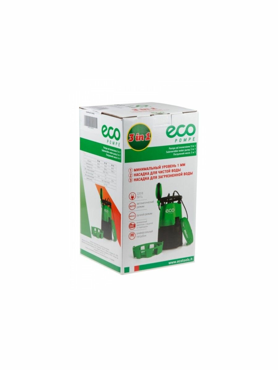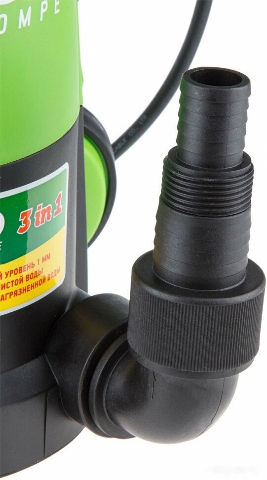 Многофункциональный погружной насос со сменными насадками позволяет использовать его в различных ситуациях. Минимальный уровень откачивания 1 мм без насадок для откачивания чистой воды до минимального уровня из затопленных жилых и производственных помещений. Насадка для чистой воды для откачивания чистой воды из небольших бассейнов, бочек. Насадка для загрязненной воды для откачивания загрязненной воды из резервуаров, котлованов или подвалов. Особенности: 3-в-1 насос для загрязненной воды, насос для чистой воды, откачивание до минимального уровня. Поплавок для автоматического контроля уровня воды. Асинхронный двигатель с защитой от перегрузок. Универсальный патрубок в комплекте. Характеристики: Потребляемая мощность: 600 Вт; Типоразмер электрического кабеля, NxS: 3х0,75 мм2; Длина электрического кабеля: 10 м; Производительность: 11000 л/ч; Максимальная глубина погружения: 7 м; Максимальное давление: 1.0 атм; Максимальная высота напора: 5.8 м; Максимальный размер включений: ; без насадки: 1 мм; с насадкой для чистой воды: 2,5 мм; с насадкой для загрязненной воды: 30 мм; Максимальная температура перекачиваемой воды: 35C; Диаметр шланга: 1 или 1 1/4 ; Вес: 4,1 кг. Комплектация: универсальный патрубок 1 шт; основание (насадка) 2 шт.
