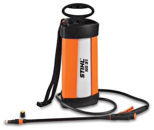 Ручной распылитель SG 31 предназначен для распыления жидких средств защиты растений от грибков и вредителей, внесения удобрений, а также для уничтожения сорняков. Ручной распылитель рекомендован для частного пользователя. Он оснащен резервуаром для жидкости, объем которого составляет 5 л. Бак имеет прозрачные вставки и шкалу деления, что позволяет контролировать уровень наполнения. Наполнение бака жидкостью производится максимально точно, благодаря большой заливной горловине. Температура распыляемой жидкости не должна превышать 30 градусов Цельсия. Максимальное рабочее давление распылителя составляет 3 бар, если максимальное рабочее давление превышается, то встроенный в манометр поршня предохранительный клапан понижает его. При максимальном давлении производительность распылителя составляет 60 л/ч. Распылитель SG 31 выполнен из легких материалов, а также оснащен наплечным ремнем, что делает его удобным для перемещения по территории садового участка. Рукоятка насоса фиксируется в положении, которое позволяет использовать ее как ручку для переноски распылителя.Устройство оборудовано пистолетом с телескопической штангой. В стандартную комплектацию входит полая конусная и плоскоструйная форсунка. Особенности и преимущества SG 31: Плавный ход Регулируемое сопло Защита помпы Удобное управление