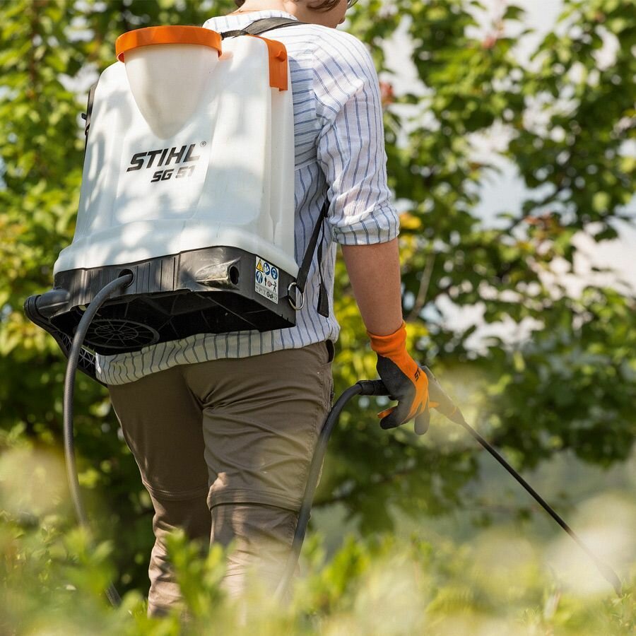 Ранцевый распылитель SG 51 - это модель ранцевого типа, которая используется для распыления различных химических препаратов при обработке растений от вредителей или болезней. Данное устройство отлично подойдет для профессиональной обработки больших по площади клумб, грядок, садов или огородов. Прибор оснащен пластиковым боковым насосом, вмонтированным в корпус, а также имеет удобную штангу, для распыления рабочего раствора в нужном направлении. Управление работой производится путем нажатия на специальный рычаг, который располагается на рукоятке. В комплект входит 2 насадки. Для контроля давления, создаваемого в емкости с препаратами, установлен манометр. Особенности и преимущества SG 51: Небольшой вес Стойкие к разрушению прокладки Точное нанесение препаратов Антикоррозионная стойкость Установлены ремни для переноски Удобная телескопическая трубка с рукояткой для удержания с кнопкой управления Возможность установки распылительных насадок различных типов Большой радиус распыления Наличие манометра Возможность установки подкачивающего рычага с правой или левой стороны Прозрачный бак Прозрачный бак со шкалой, позволяющей легко определять уровень наполнения. Встроенные мерные стаканы В крышку бака встроены три мерных стакана объёмом 10 мл, 20 мл и 50 мл. Встроенный держатель распылительной трубки Обеспечивает надёжное размещение распылителя при хранении и транспортировке. Дополнительный держатель служит для надёжной фиксации распылительного экрана (предлагается в качест.