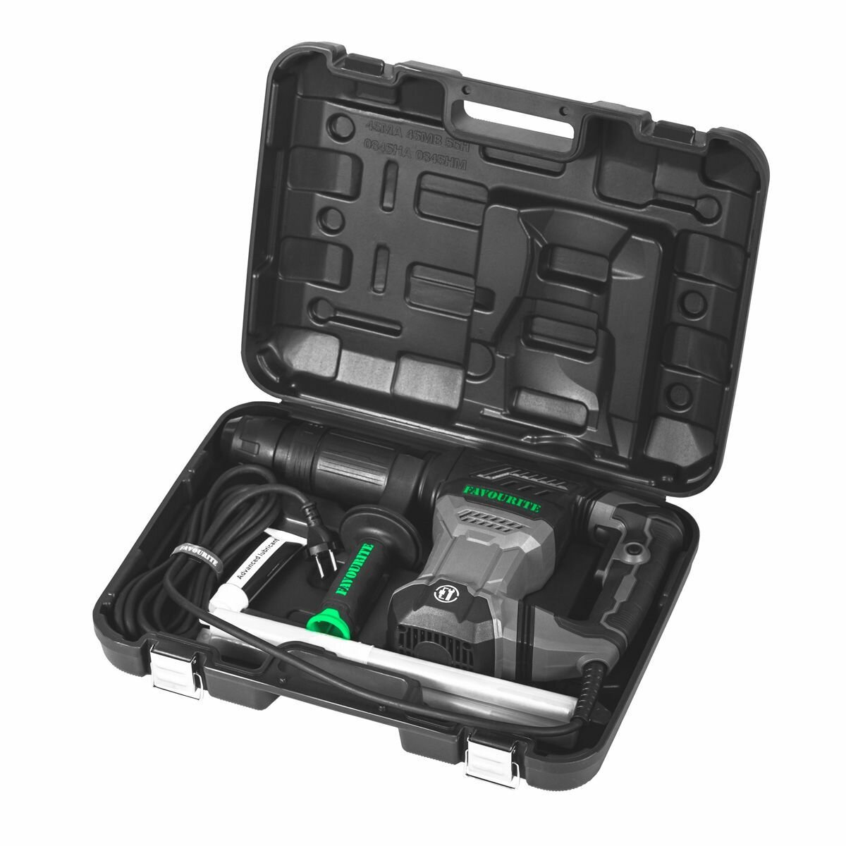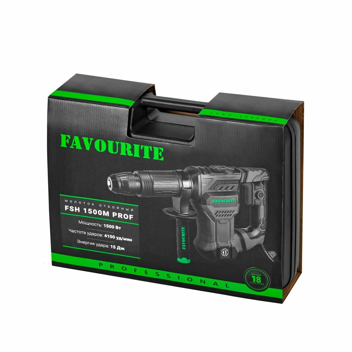 Отбойный молоток FAVOURITE FSH 1500M PROF 15 Дж, 1500 Вт отлично подойдет для долбления камня и бетона при демонтажных работах, а также прокладки коммуникаций. За счет расположения двигателя вертикально инструмент компактен и немного весит. Для удобства и точности выполнения работ модель оснащена дополнительной фирменной рукояткой FAVOURITE. Модель оснащена крепким и надежным типом патрона - SDS-MAX, благодаря которому можно быстро устанавливать профессиональную оснастку.