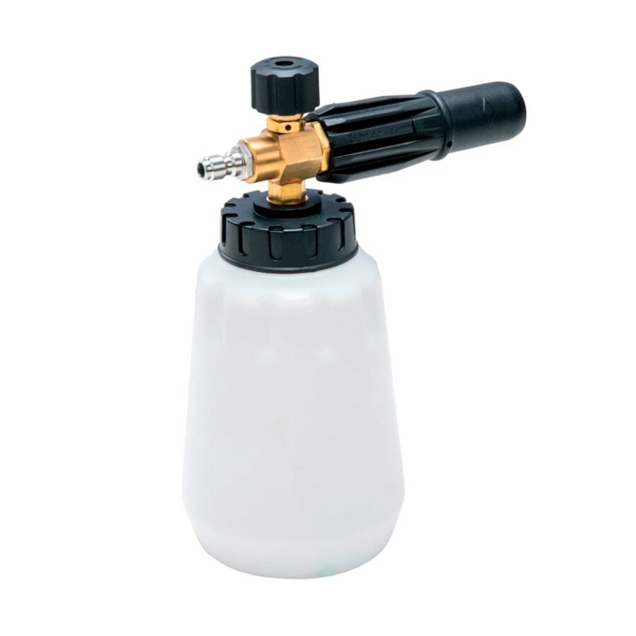Пеногенератор оснащен регулируемым вентилем, который позволяет контролировать подачу пены. Это позволяет вам точно настроить количество пены в зависимости от типа очищаемой поверхности и степени загрязнения.