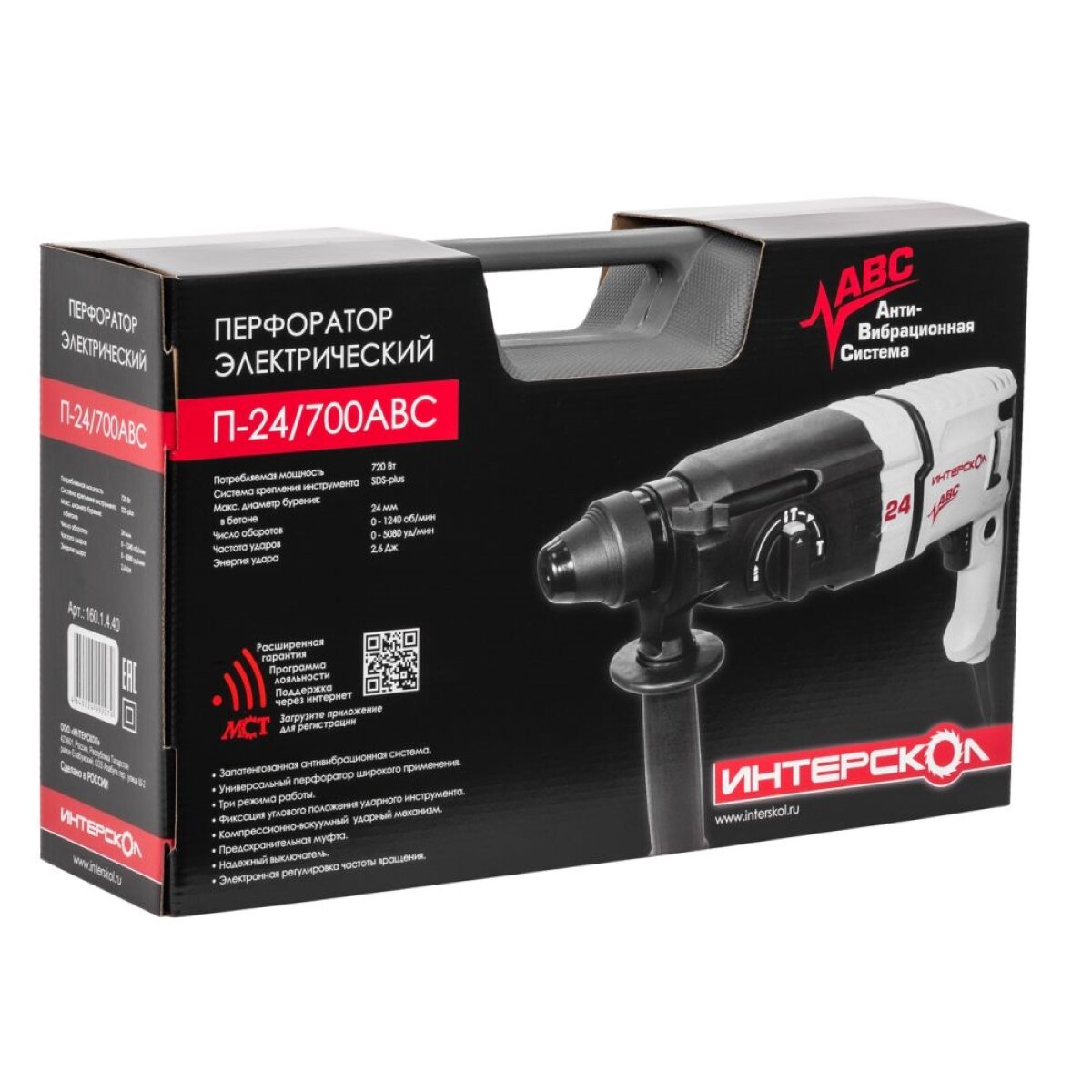 Перфоратор ручной электрический П-24/700АВС предназначен для бурения отверстий в бетоне и камне, а также для разрушения кирпичной кладки, пробивания штроб и борозд в бетоне, камне, кирпиче и сверления отверстий в различных конструкционных материалах. Рекомендуется для профессионального применения на промышленных предприятиях и строительстве, а также для работы непрофессиональными пользователями в личных хозяйствах, бытовых и аналогичных условиях.