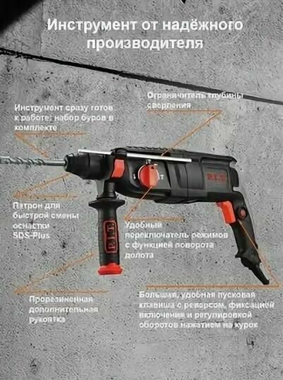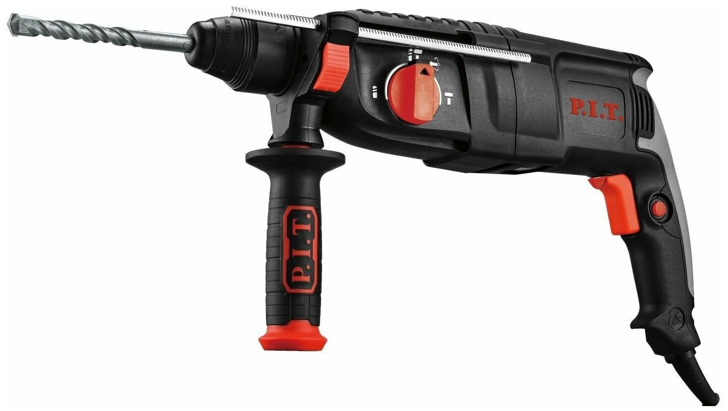 P.I.T. PBH26-C5 качественный, высокопроизводительный перфоратор для эффективной работы. PIT PBH26 C5 подходит для долбления бетона, бурения отверстий, а также сверления в дереве, бетоне и металле. Три режима работы, в том числе долбление - для самых твердых материалов. Высокая мощность при небольшой массе инструмента для комфортной работы. Преимущества: 3 режима работы: сверление, сверление с ударом, долбление. Система крепления бура SDS-plus. Прорезиненная, текстурированная рукоятка. Модернизированная пылезащитная муфта. Наличие функции фиксации угла установки долота при работе в режиме удара без вращения. Реверс для извлечения бура. Значительные диаметр и скорость бурения позволяют выполнять работу быстрее и эффективнее. Применение: для сверления, бурения, долбления материалов. Комплектация: перфоратор, пластиковый кейс, буры (3 шт), ограничитель глубины сверления, смазка для буров, дополнительная рукоятка, инструкция по эксплуатации