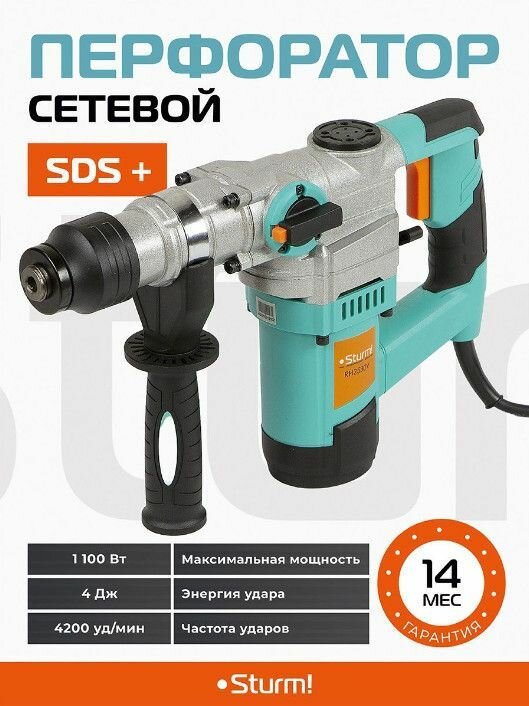 Перфоратор Sturm SDS Plus RH2530V выдерживает серьезные нагрузки благодаря вертикальному расположению двигателя.