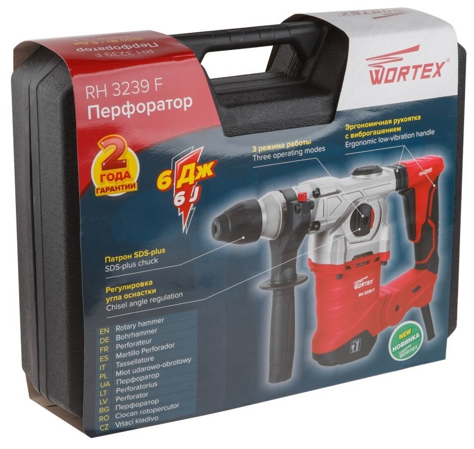 Перфоратор WORTEX RH 3239 F (RH3239F1129) — инструмент для сверления/сверления с ударом, предназначенный для применения в условиях домашней мастерской и для неинтенсивных нагрузок в условиях строительной площадки. Служит для работ по сверлению отверстий в бетоне до 32 мм и других твердых материалах. Корпус редуктора спроектирован таким образом, чтобы обеспечить долговечность и максимальный отвод тепла. Для оптимального выбора режима работы инструмент имеет 7 скоростных режимов. Многопозиционная ручка позволяет надежно удерживать инструмент при любых режимах эксплуатации.