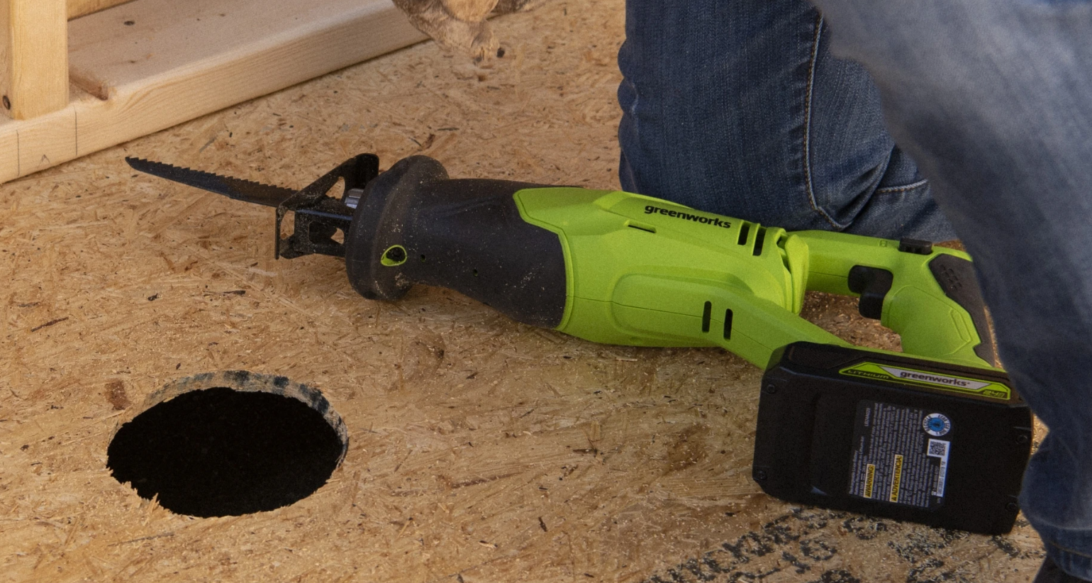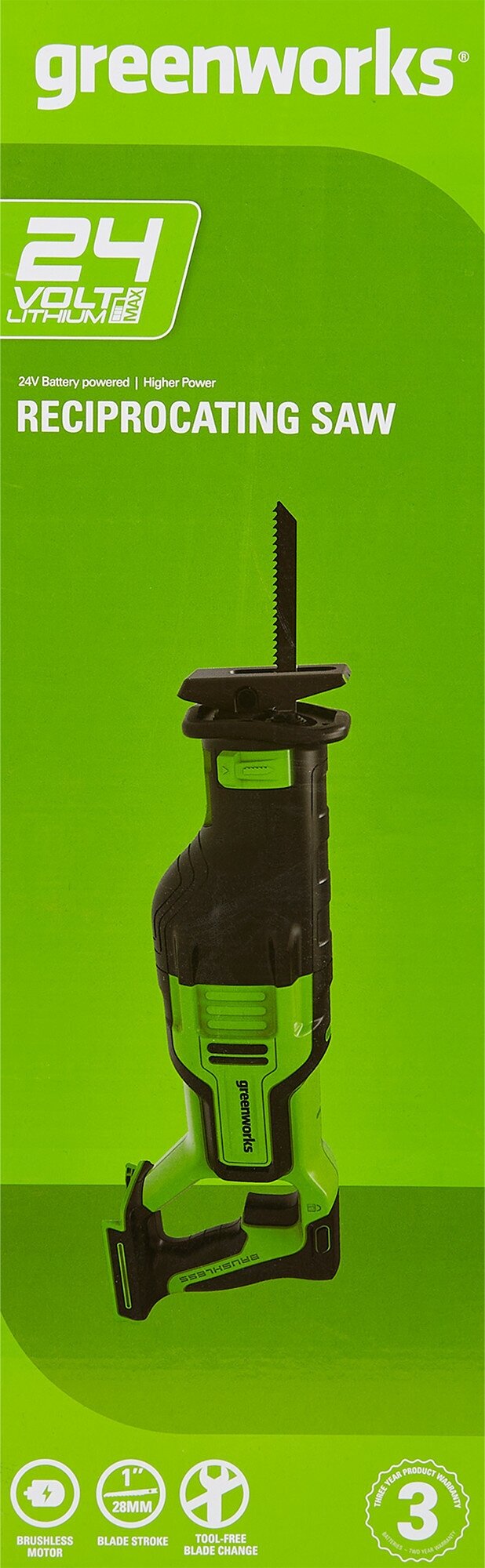 Пила сабельная аккумуляторная GREENWORKS GD24RS 24В,мак.гл.пропила-220мм,б/щ,без АКБ и ЗУ (1200407)