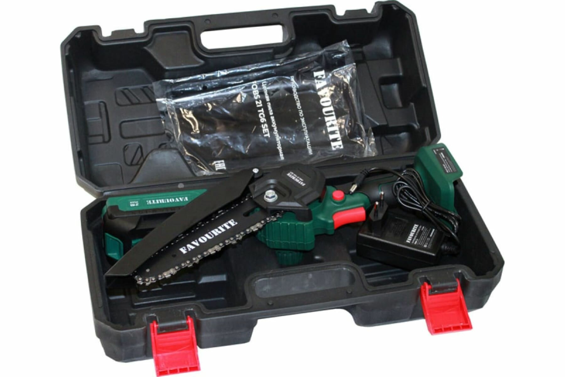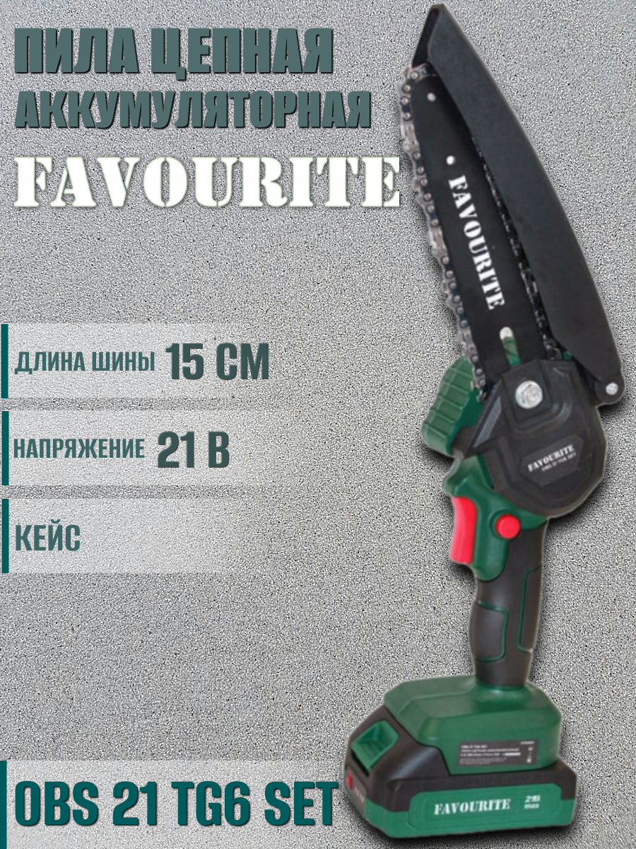 Цепная аккумуляторная пила FAVOURITE OBS 21 TG6 SET подходит для обрезки и распиливания небольших веток и сучков, идеальный инструмент для садовода, которому нужна небольшая пила для обрезки.
