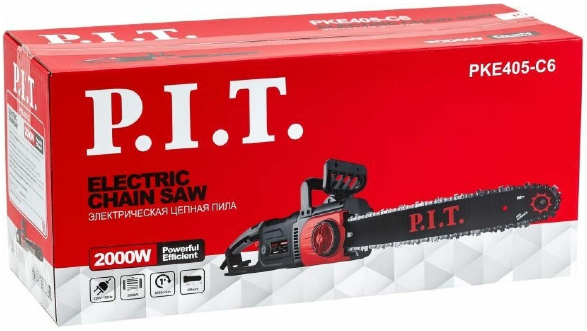 Цепная электрическая пила P. I. T. PKE405-C6 - отличный помощник на даче и дома. Поможет приготовить дрова, спилить ненужные ветки, подрезать материалы для строительства. Оснащена мощным надежным двигателем. При этом не требует особой подготовки к работе: не нужно постоянно заливать топливо, нет проблем с запуском при любой температуре. Система автоматической смазки цепи предохранит шину и пильную цепь от перегрева и преждевременного износа. Возможность бесключевого натяжения цепи значительно сокращает время на обслуживание инструмента в процессе использования. Особенности P. I. T. PKE405-C6: Безопасность: пластиковый щиток защищает пользователя, снижая вероятность травмы во время работы. Точное пиление: зубчатый упор позволяет зафиксировать P. I. T. PKE405-C6 при распиле и предотвращает соскальзывание инструмента. Бесключевое натяжение пилы: в конструкции предусмотрен бесключевой механизм, что упрощает натяжение цепи. Преимущества P. I. T. PKE405-C6: Прорезиненная рукоятка для комфортной работы Клавиша защиты от случайного включения и щиток дополнительной рукоятки для безопасности использования Автоматическая система смазки цепи для продолжительного срока службы Уменьшенная вибрация, отсутствие запаха Индикатор уровня масла Металлический упор