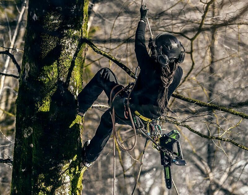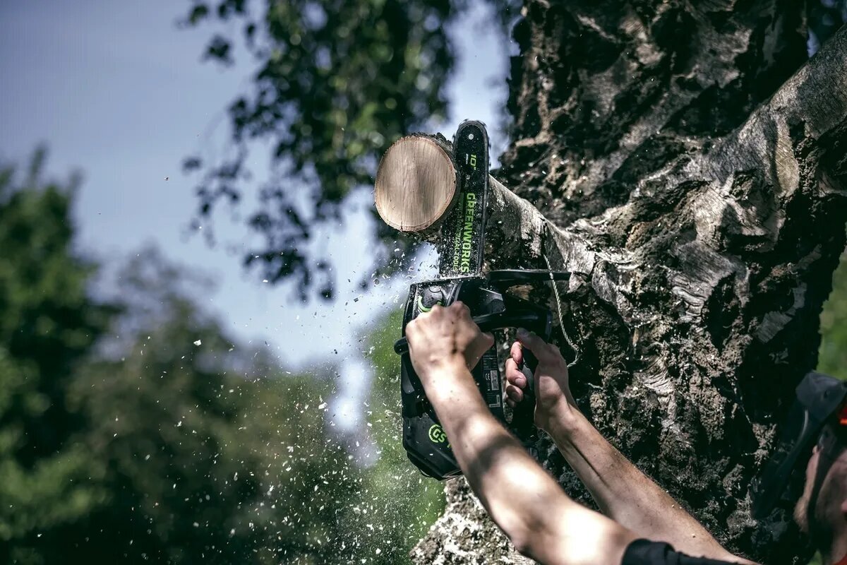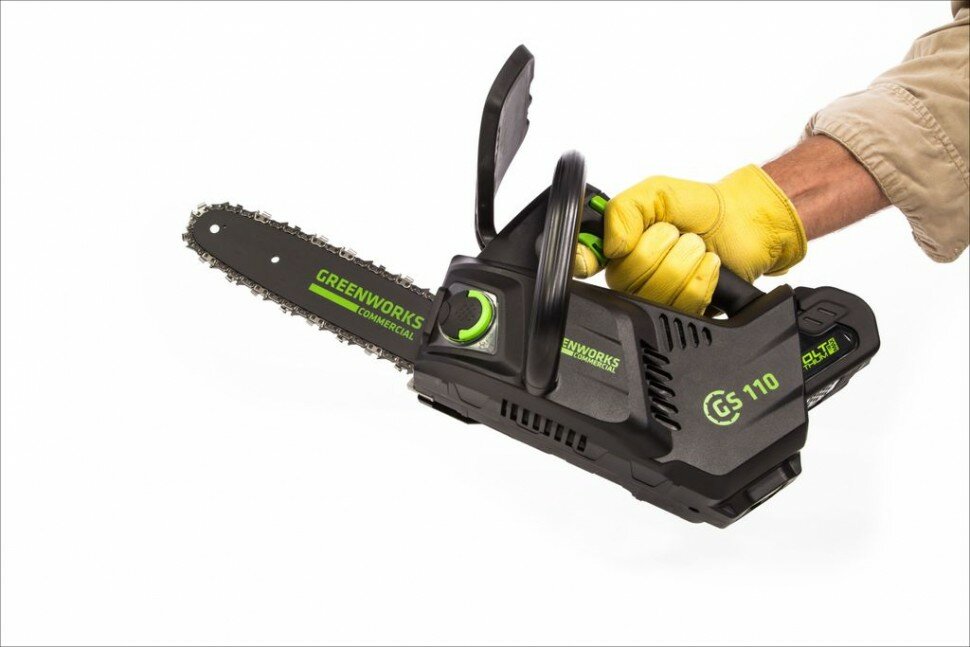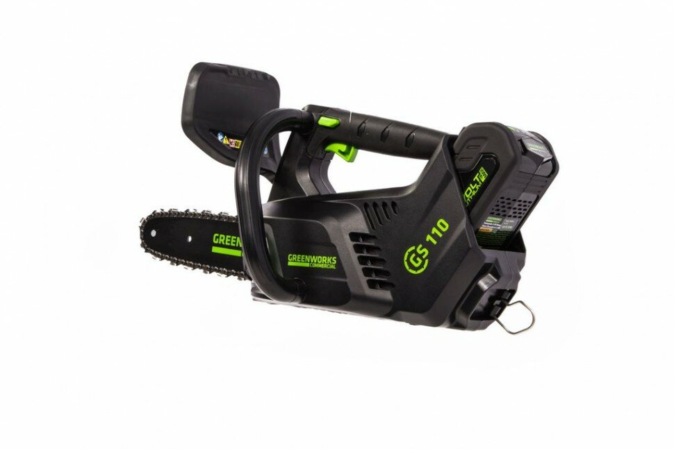 Пила цепная одноручная аккумуляторная Greenworks Арт. 2003807 (арбориста), 40V, 25,4 см, бесщеточная, без АКБ и ЗУ — легкий (всего 2,7 кг) и компактный инструмент, для работы одной рукой.