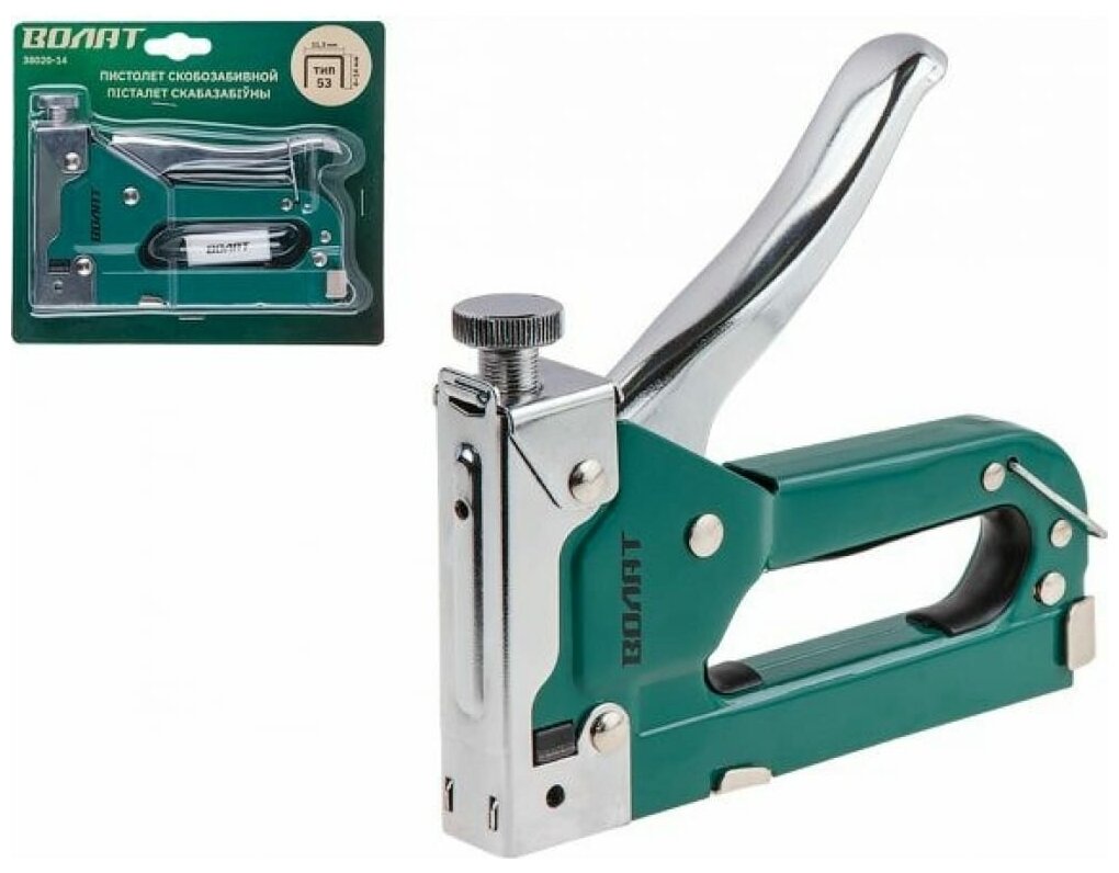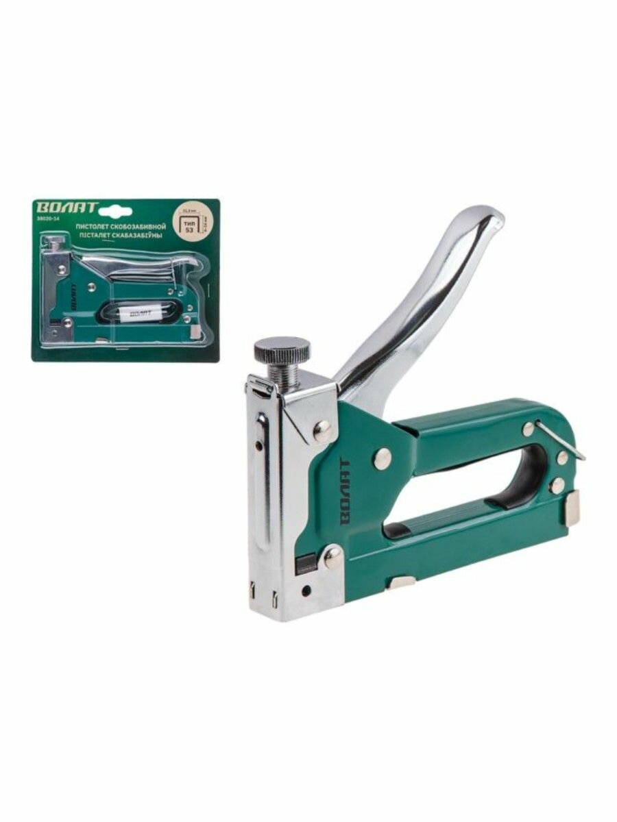 Пистолет скобозабивной мет. 4-14мм волат 38020-14 - служит для стягивания листовых материалов или приклепывания ткани и тонкой древесины к профильному основанию. Инструмент обладает высокой прочностью. Благодаря прочному корпусу легко справляется с большой нагрузкой при забивании больших скоб. Характеристики: Подходящая расходка - скобы. Тип скоб - 53/A. Материал корпуса - пластик/металл. Удлиненный "носик" - нет. Функция повторного удара - нет. Индикатор замены скоб - нет. Скобозабивной-молоток - нет. Регулировка силы удара - есть. Тип инструмента - степлер. Max скрепляемая толщина - 14 мм. Упаковка - блистер. Размер скоб - 4-14 мм. Вес нетто - 0.513 кг. Комплектация: Пистолет - 1 шт.