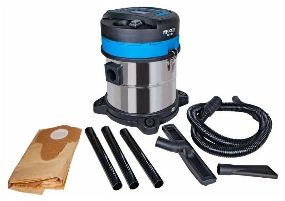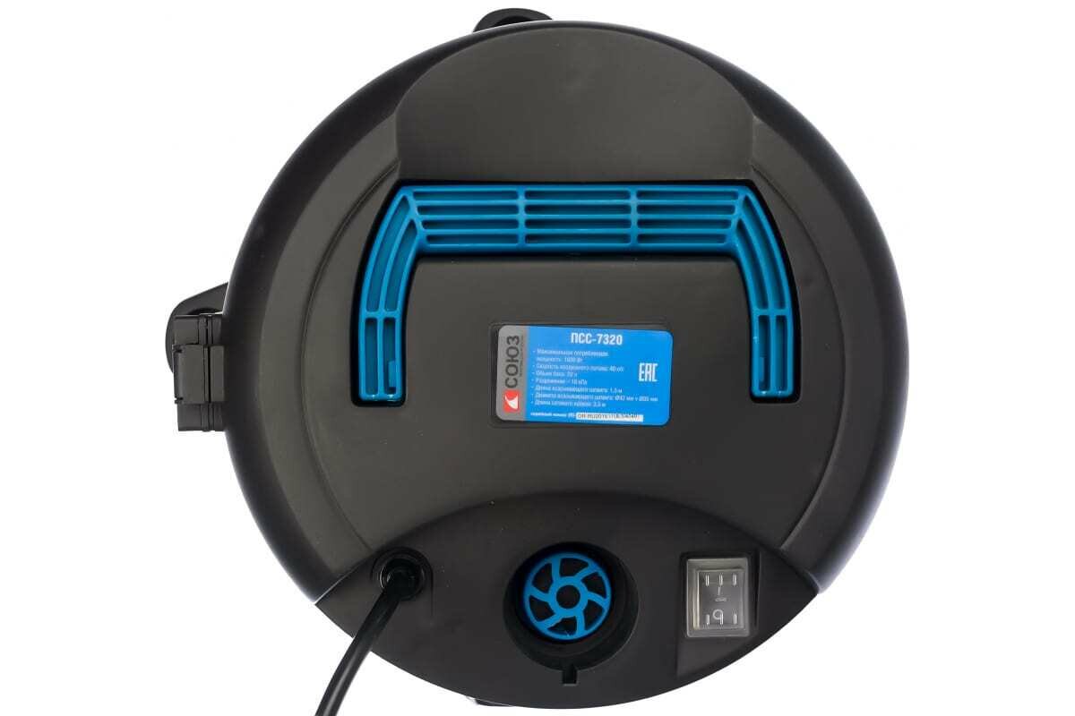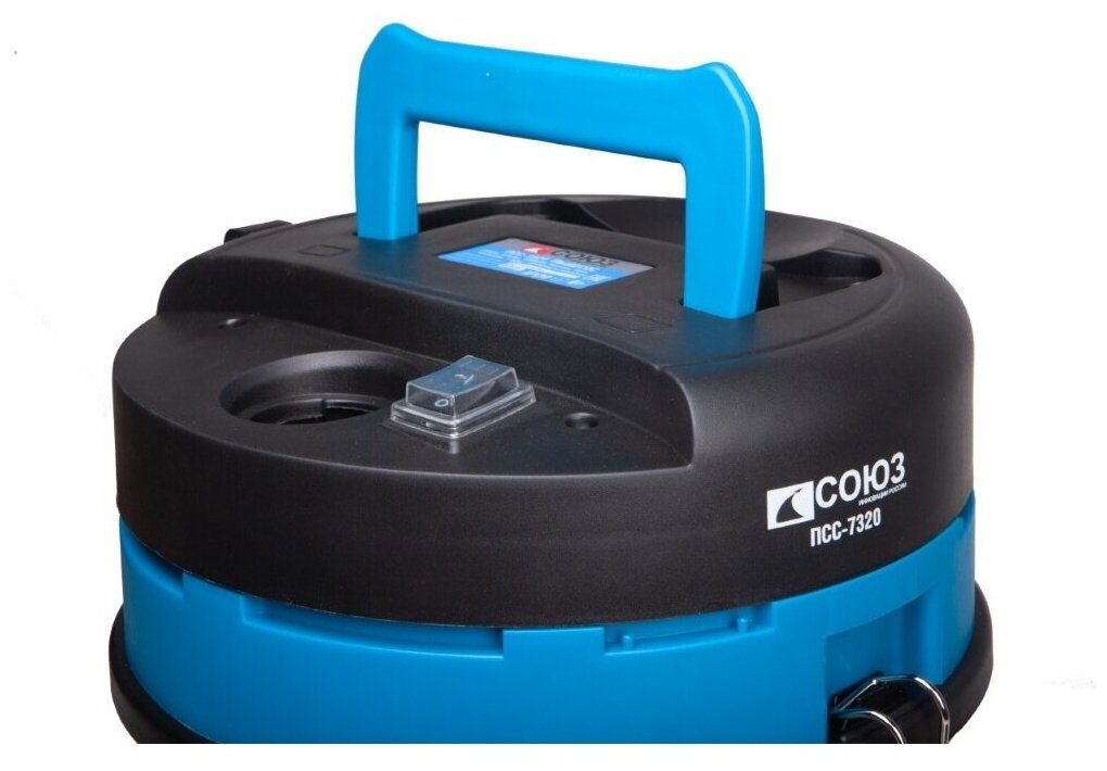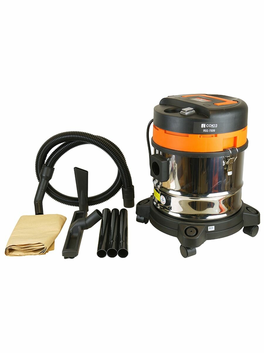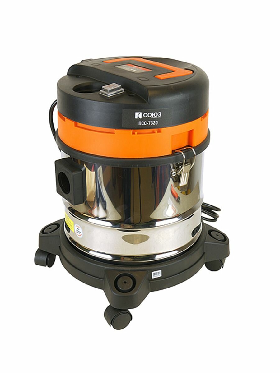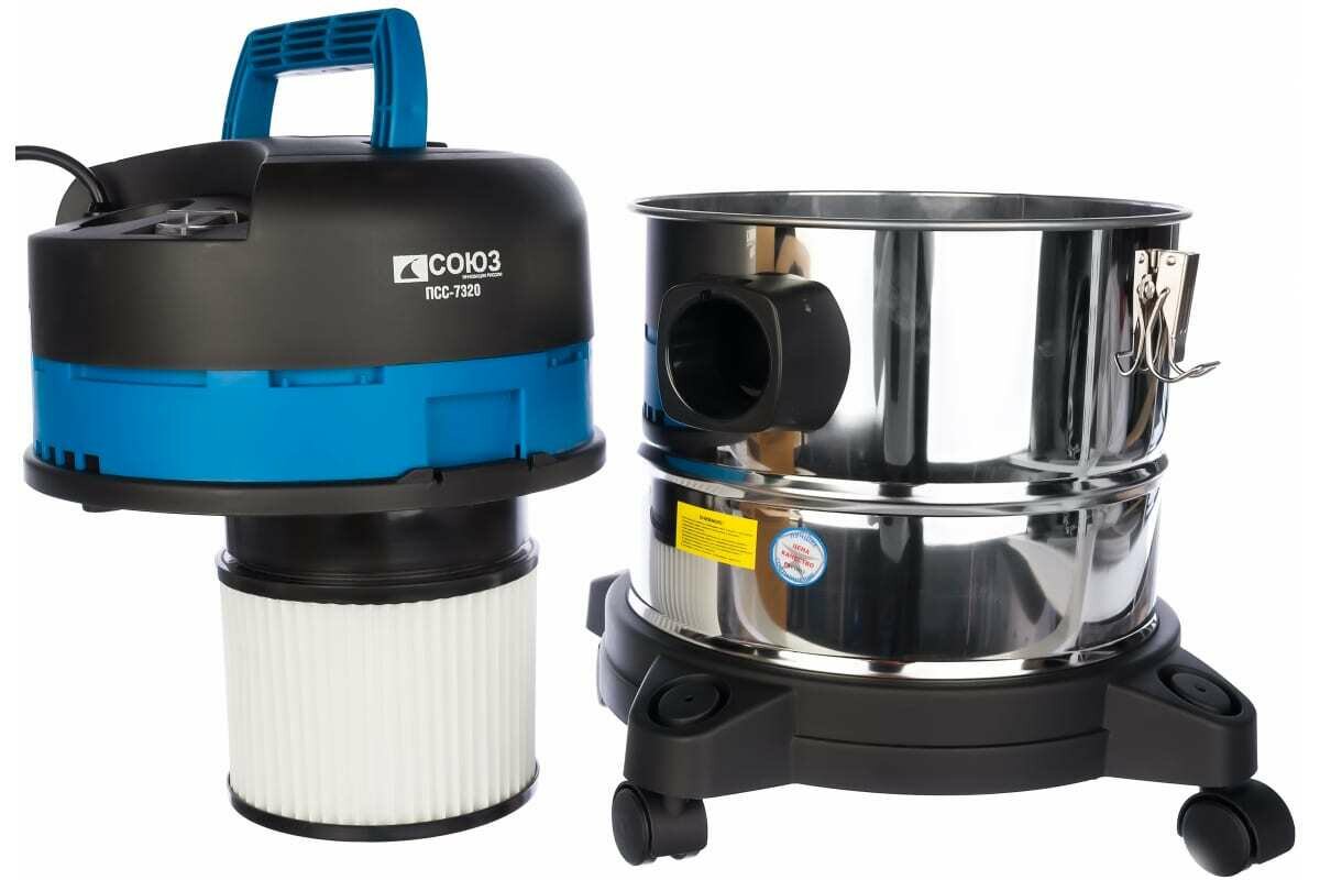 Промышленный пылесос Союз ПСС-7320 подходит для совместного использования с электроинструментом мощностью до 2000 Вт. Бак из нержавеющей стали отличается высоким уровнем прочности и вмещает до 20 л мусора. Конструкция модели позволяет собирать жидкости. Всасывание воды автоматически останавливается в случае заполнения емкости.