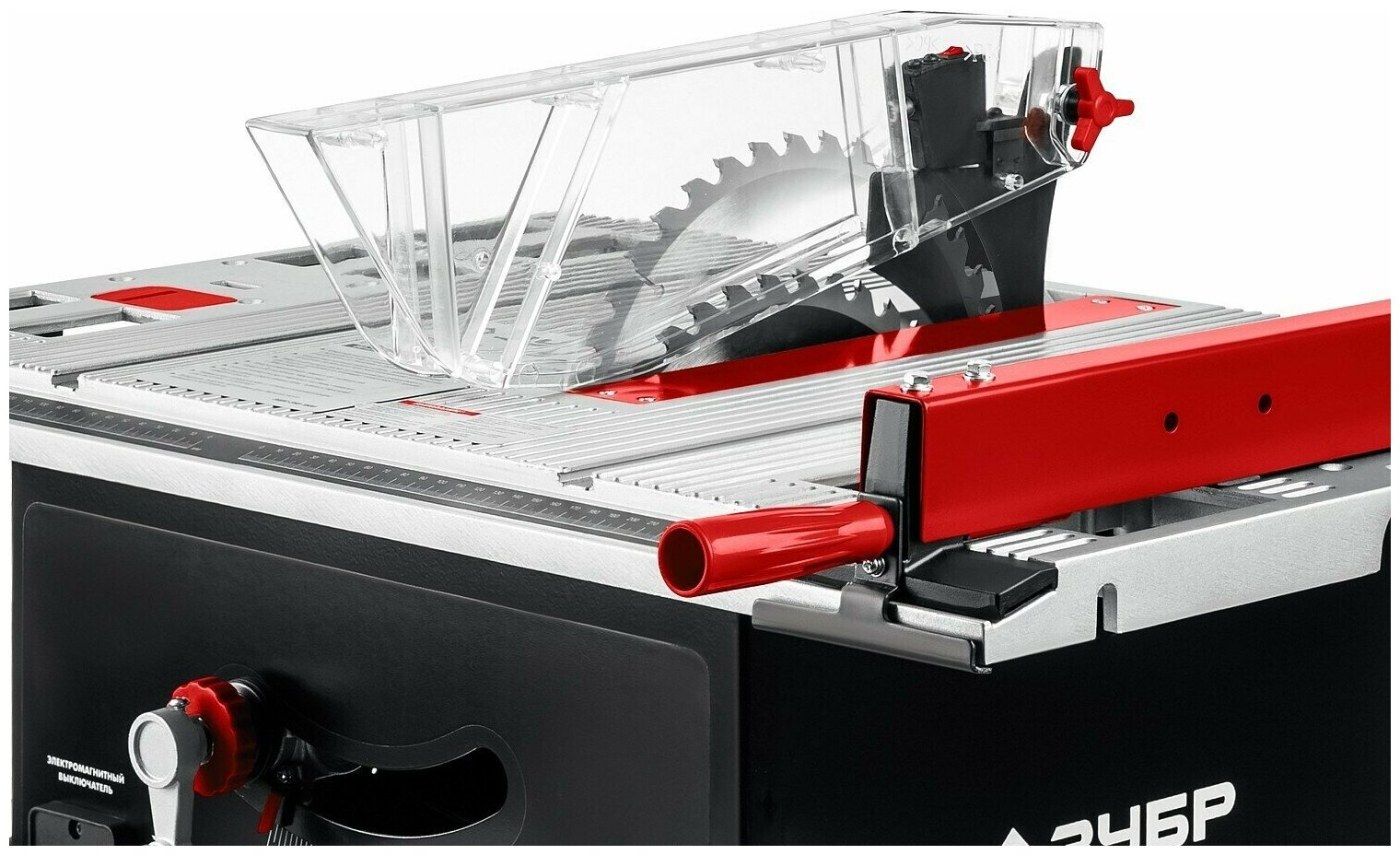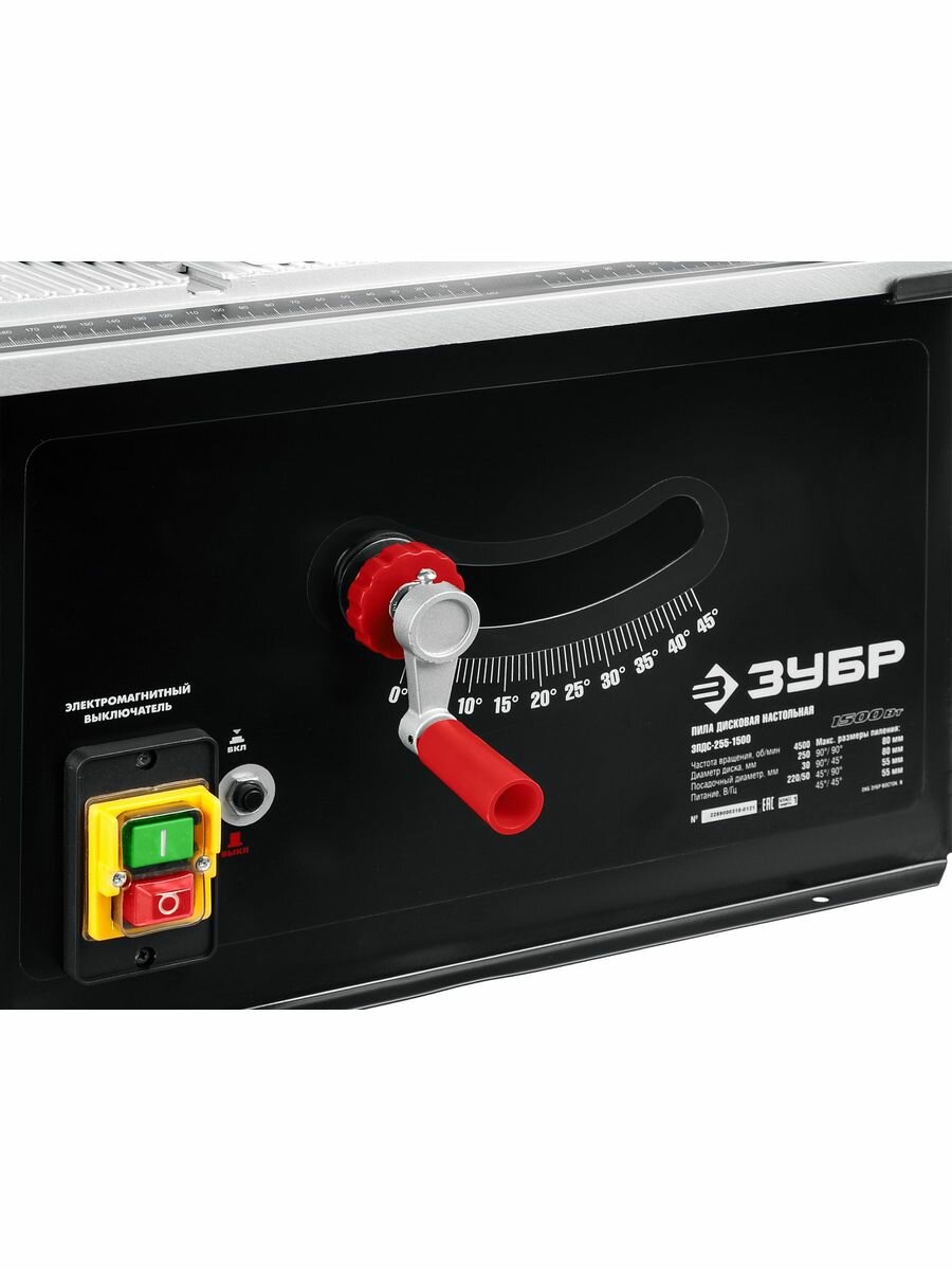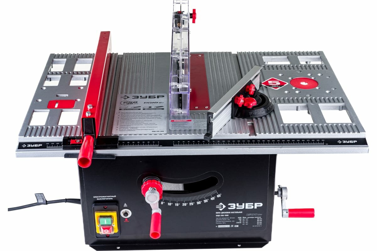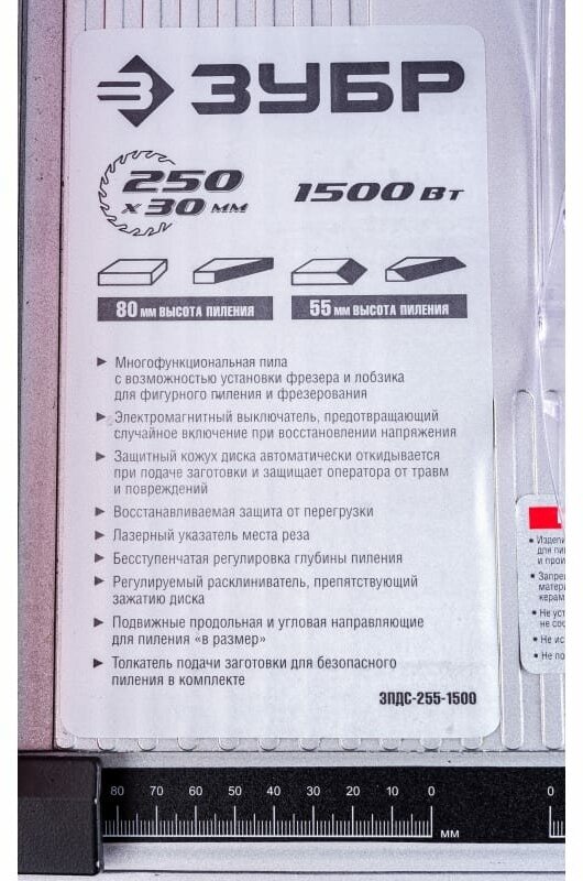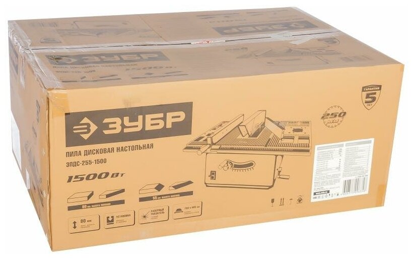 Артикул ЗПДС-255-1500 Мощность, Вт 1500 Частота вращения шпинделя, об/мин 4500 Диаметр диска, мм 250 Диаметр посадочного отверстия, мм 30 Количество зубьев, шт 40 Макс. глубина пропила под углом 90°, мм 80 Макс. глубина пропила под углом 45°, мм 55 Размер рабочего стола, мм 700х465 Регулировка глубины и угла реза есть Лазерный указатель есть Электромагнитный выключатель есть Защита от перегрузки есть Толкатель есть Напряжение питания, В/Гц 220±10% /50 Габариты, см 75.5х52х34 Масса изделия, кг 20 Масса в упаковке, кг 23 Преимущества Изделие для большинства работ по дереву: продольного, наклонного, косого и комбинированного пиления, а также фигурного пиления и фрезерования Электромагнитный выключатель, предотвращающий случайное включение при восстановлении напряжения после пропадания Защитный кожух диска автоматически откидывается при подаче заготовки и защищает оператора от травм и повреждений Восстанавливаемая защита от перегрузки Лазерный указатель места реза существенно повышает качество работы Бесступенчатая регулировка глубины пиления Регулируемый расклиниватель, препятствующий зажатию диска Подвижные продольная и угловая направляющие для пиления в размер Толкатель подачи заготовки для безопасного пиления в комплекте Описание Поистине многофункциональный инструмент для почти всех работ по дереву. Спектр работ существенно расширен благодаря возможности стационарной установки лобзика и фрезера непосредственно на изделие. Таким образом, вместо, хотя и универсального, но просто распиловочного, станок превращается в настоящий деревообрабатывающий агрегат Применение Для пиления заготовок из дерева под различными углами, а также под наклоном Комплектация: Пила настольная - 1 шт. Кожух защитный - 1 шт. Расклиниватель - 1 шт. Элемент питания - 2 шт. Продольная направляющая - 1 шт. Упор угловой - 1 шт. Клю 1 шт Кожух защитный 1 шт Расклиниватель 1 шт Элемент питания 2 шт Продольная направляющая 1 шт Упор угловой 1 шт Ключ гаечный 2 шт Ключ имбусовый 1 шт Рукоятка 2 шт Толкатель подачи заготовки 1 шт Фиксатор лобзика 1 шт Руководство по эксплуатации 1