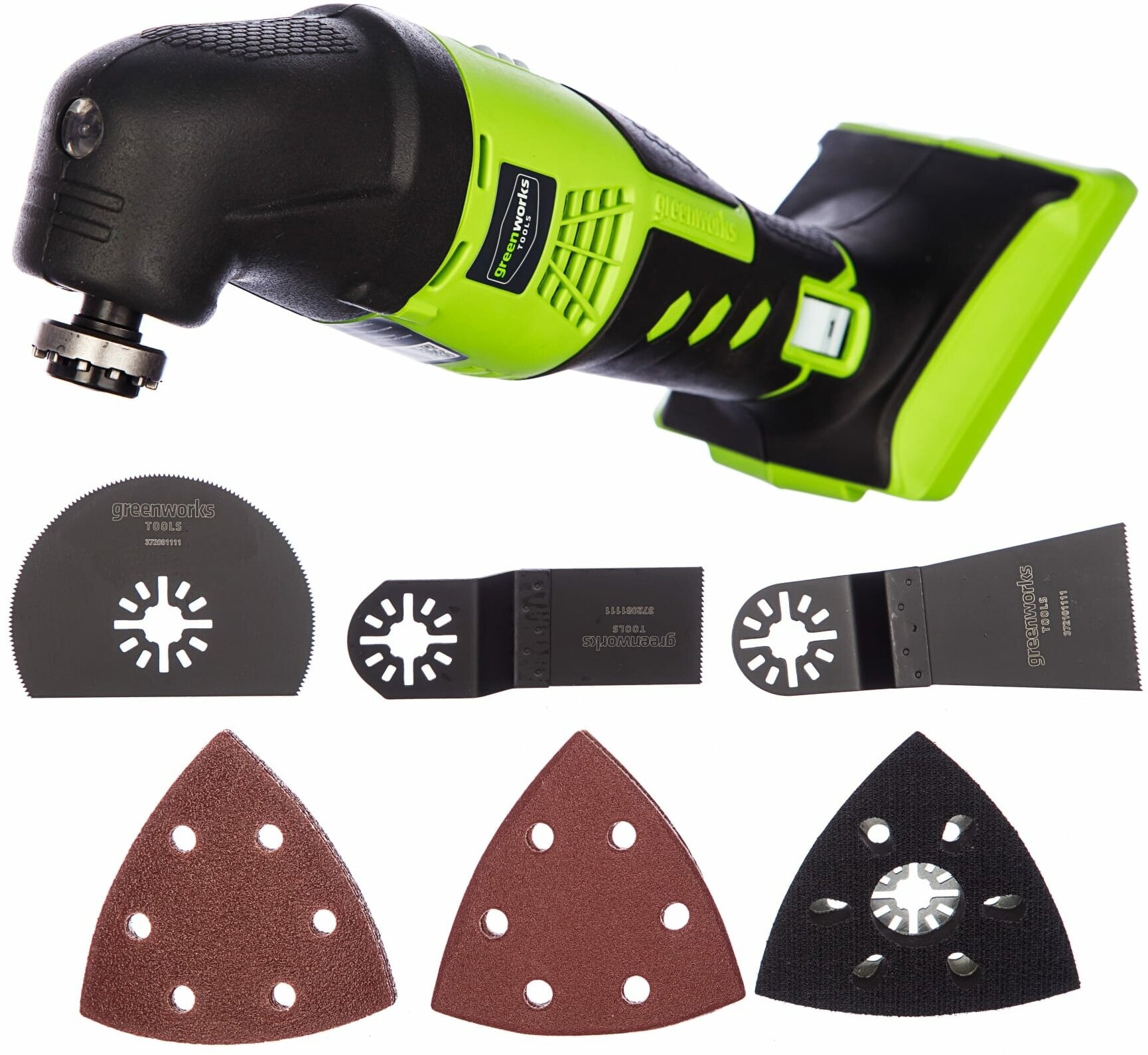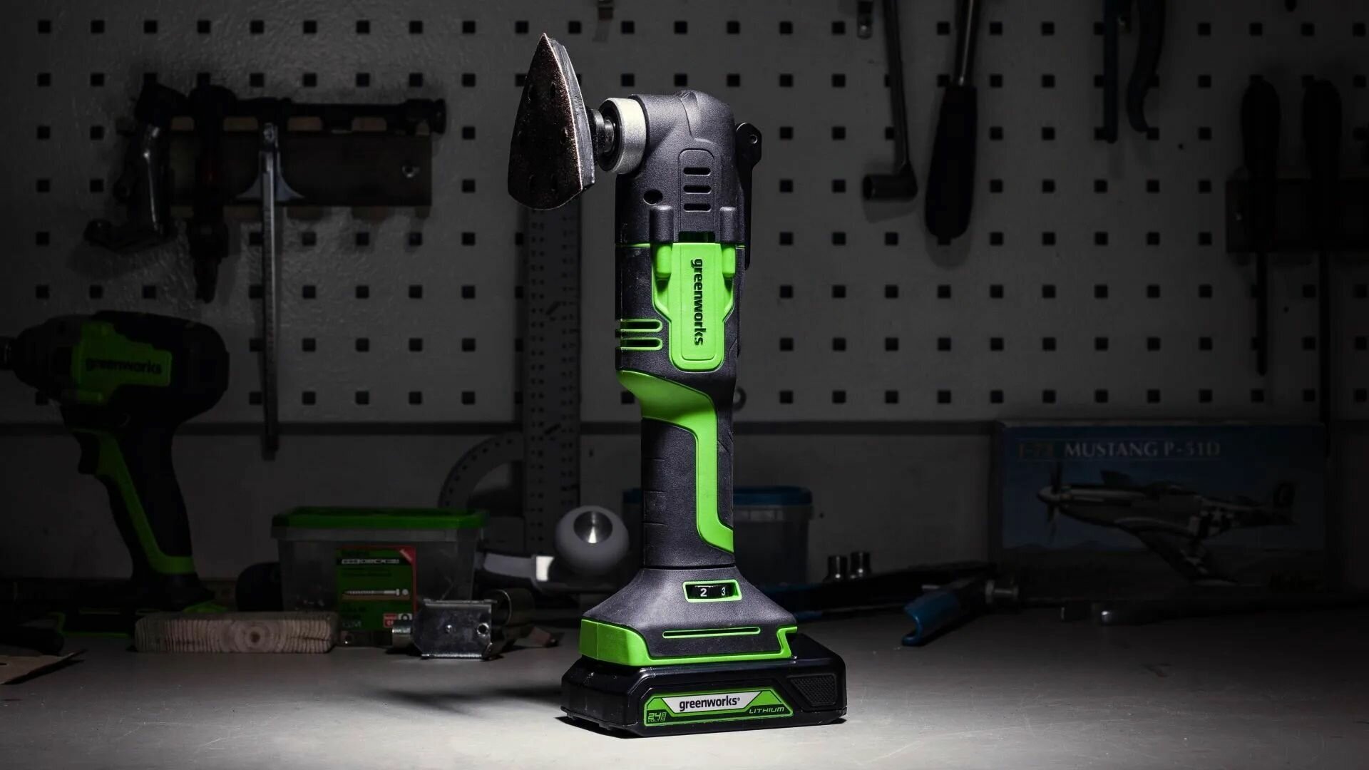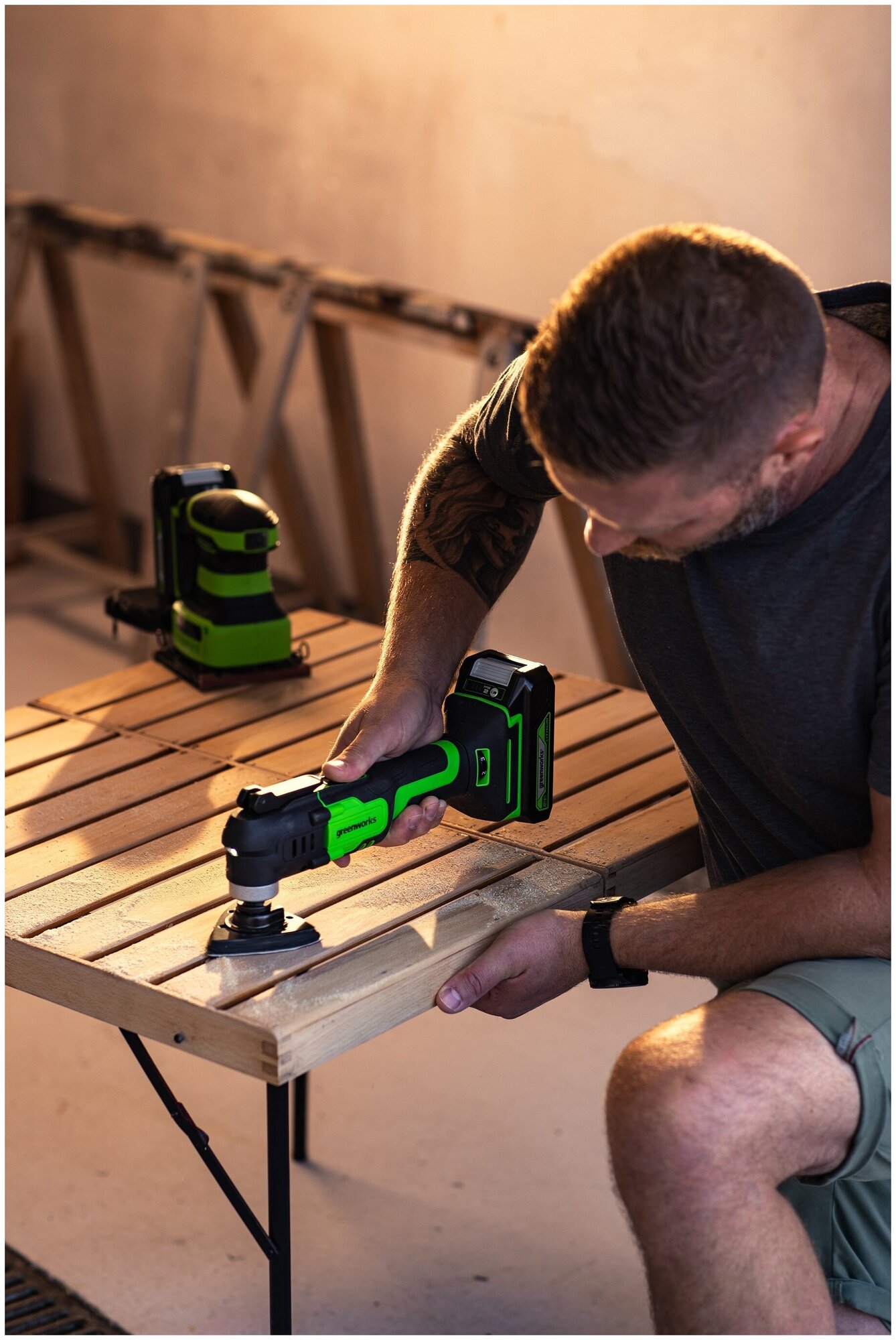 Реноватор аккумуляторный Greenworks, G24MT, (Арт. 3400307), 24 В, без АКБ и ЗУ - это многофункциональный инструмент для резки гипсокартона, металла, дерева, пластика, композитных материалов. Также используется для чистой шлифовки. Позволяет быстро и легко производить погружное врезание в материал или резать заподлицо без повреждения его поверхности.