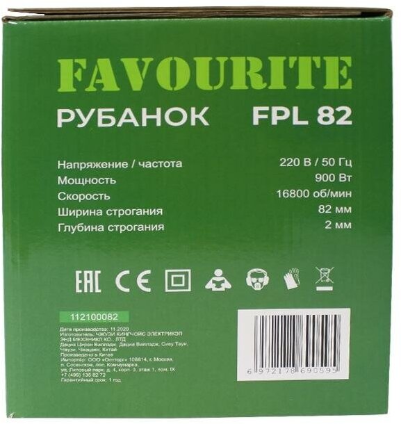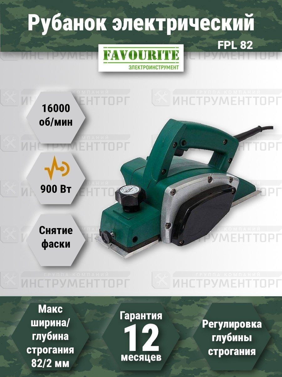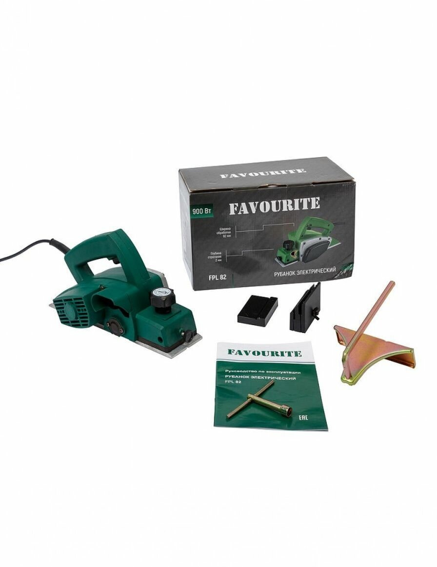 Электрический рубанок – ручной электроинструмент, предназначенный для строгания древесины в бытовых и производственных условиях. Рубанком можно строгать плоские поверхности и кромки (фаски). Рубанок предназначен для эксплуатации при температуре окружающей среды от -10°С до +40°С, относительной влажности воздуха не более 80% и отсутствии прямого воздействия атмосферных осадков и чрезмерной запылённости воздуха. Характеристики: Бренд: Favourite; Потребляемая мощность (Вт): 900; Ширина обработки (мм): 82; Максимальная глубина строгания (мм): 2; Число оборотов на холостом ходу (об/мин): 16800; Ручка с регулировкой глубины строгания: Да; Снятие фаски: Да; Направляющая: Да. Преимущества: Рубанок обеспечивает направленный выброс стружки; Плавное регулирование глубины строгания; Возможность подключения пылесоса; Легкий и компактный, что позволяет легко переносить его на различные участки работы. Благодаря своим характеристикам электрорубанок обеспечивает высокую точность и эффективность работы, экономит время и силы, а также является надежным и долговечным инструментом.