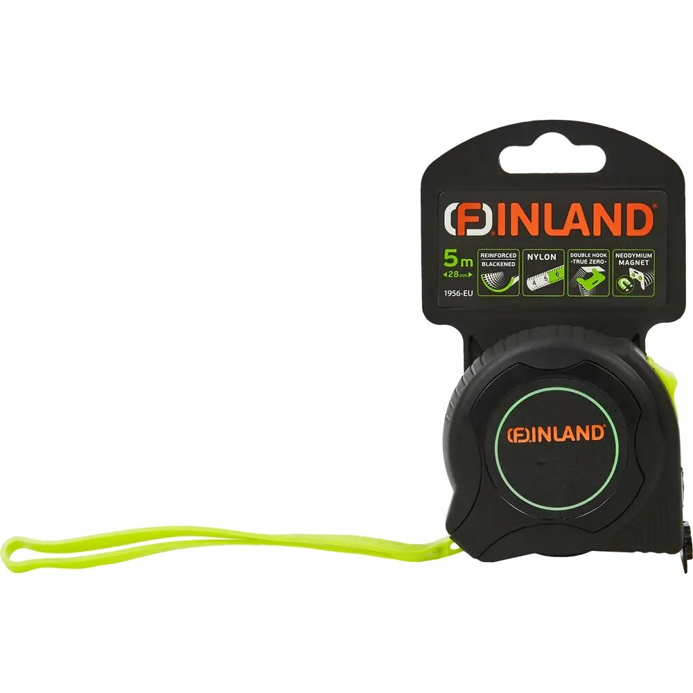 Рулетка FINLAND 1956 черный нейлон - незаменимый инструмент для строительства и ремонта. Она обладает мощным магнитом, который облегчает ее использование. Длина рулетки составляет 5 метров, а ширина - 28 мм. Благодаря большой длине, она подходит для измерений как внутри помещений, так и на открытом воздухе.