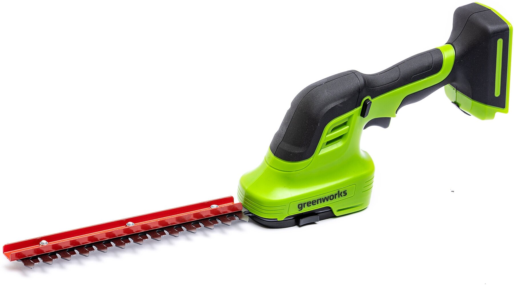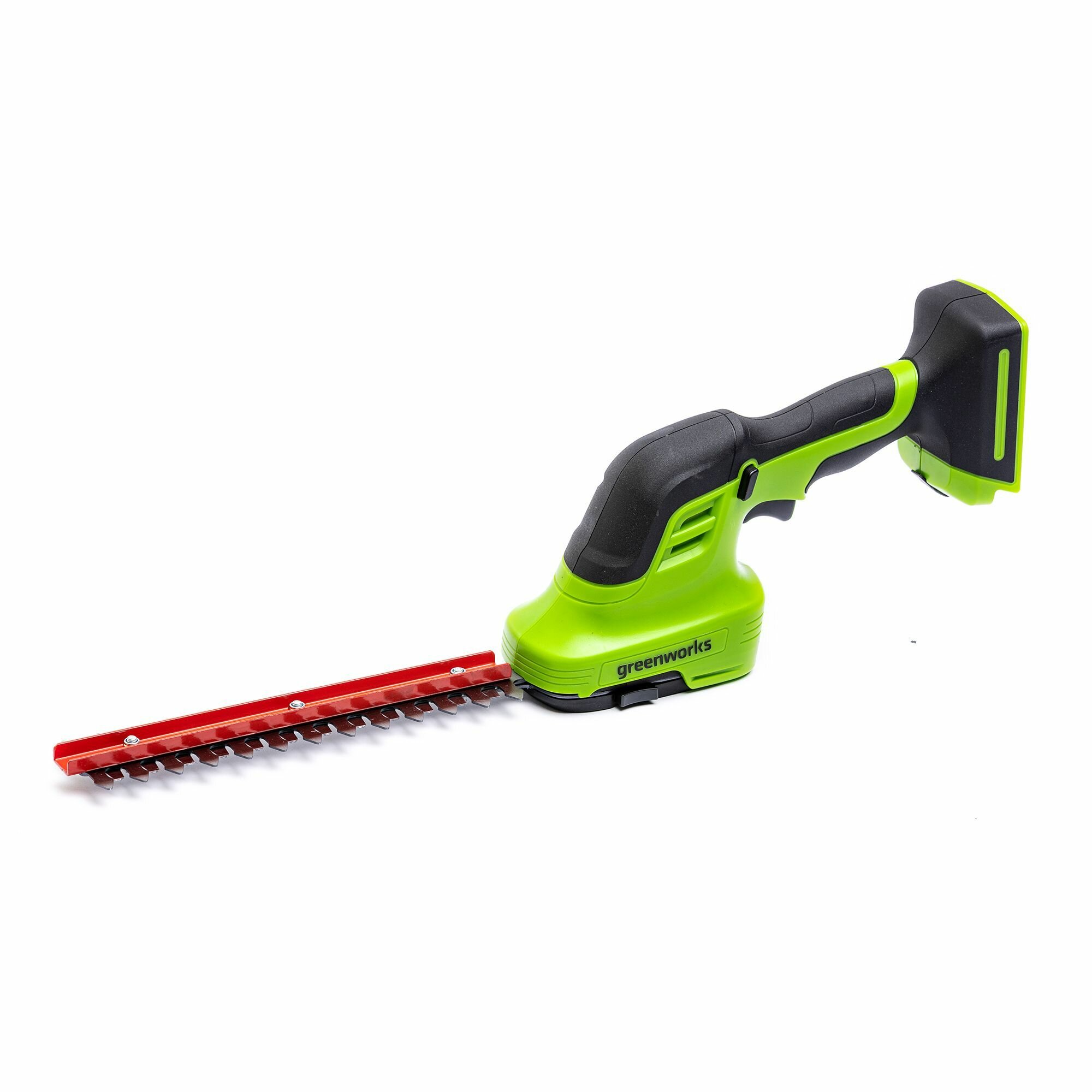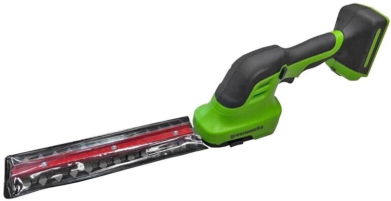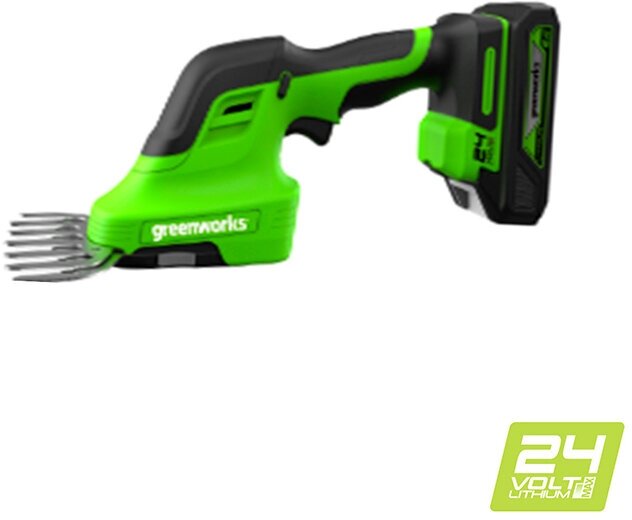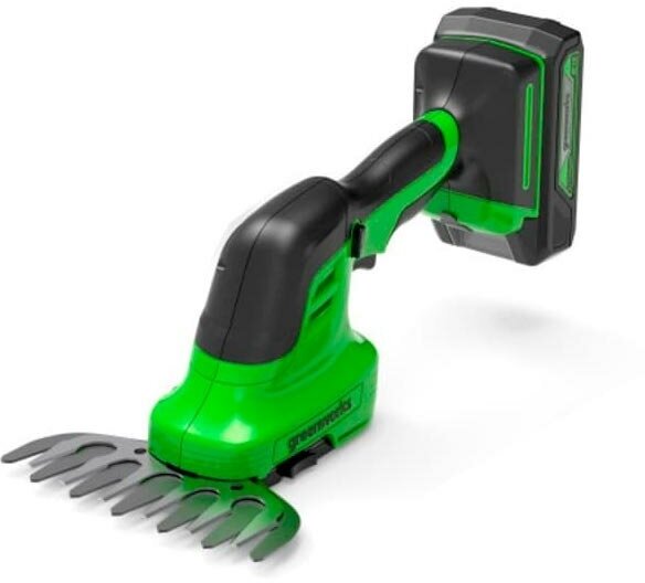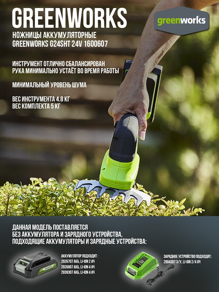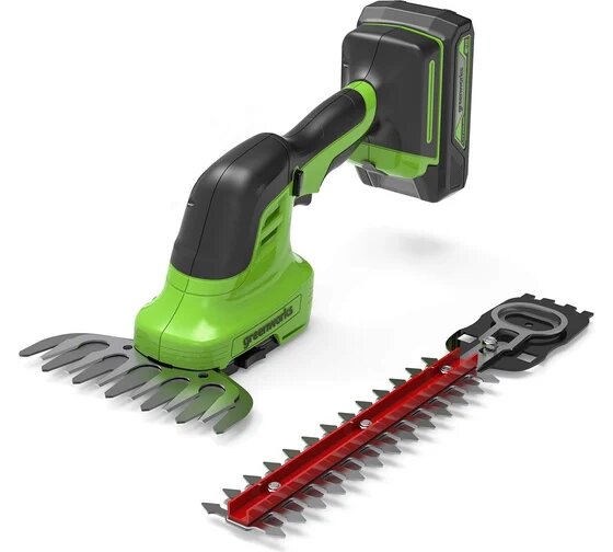 GreenWorks G24SHT 1600607 работает от аккумуляторной батареи 24V, которую можно использовать с другими устройствами линейки 24V