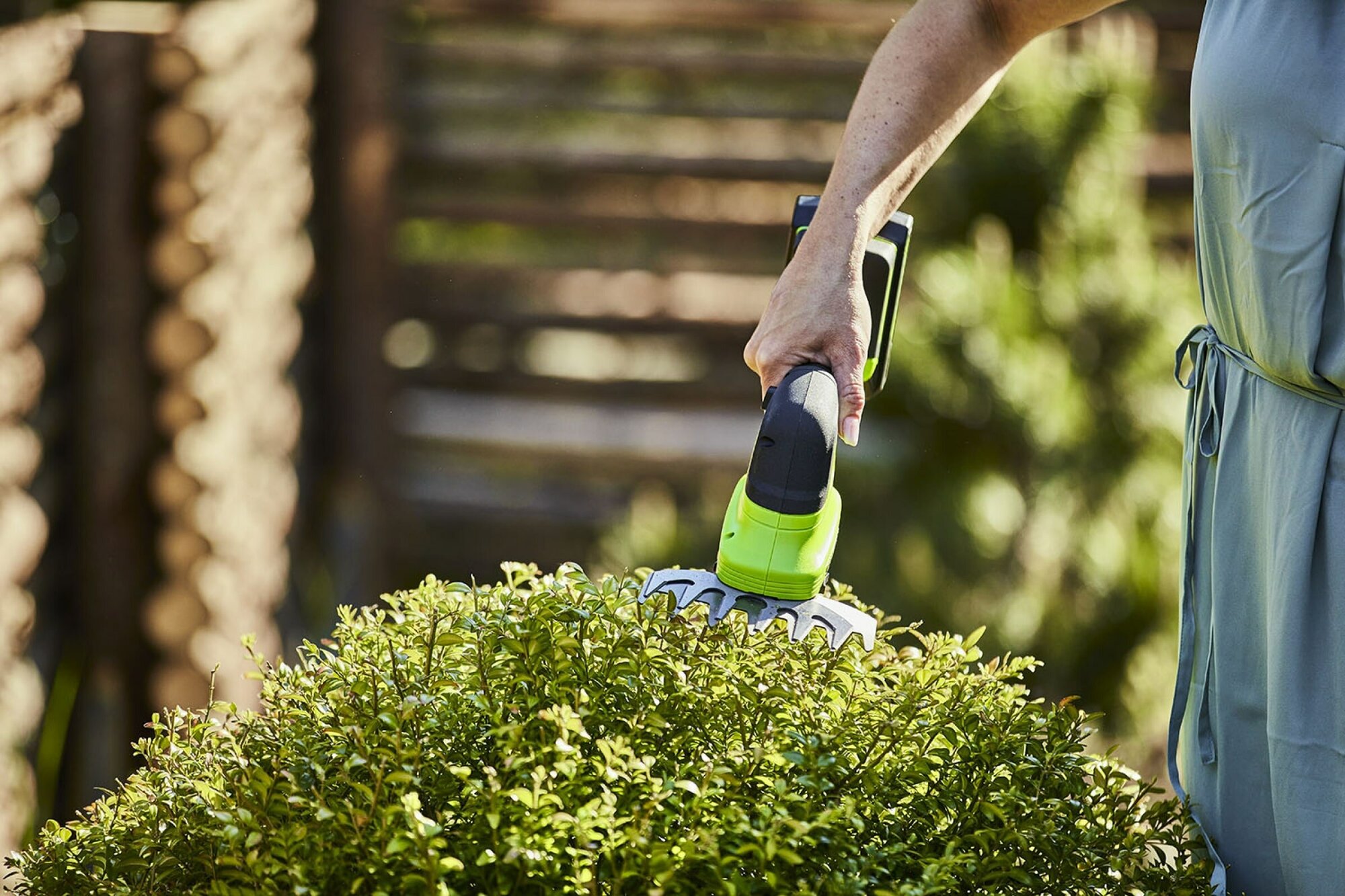 Аккумуляторные садовые ножницы-кусторез GreenWorks G24SHT 24 В 1600607 подходят для ухода за газоном и кустарниками на частном участке.