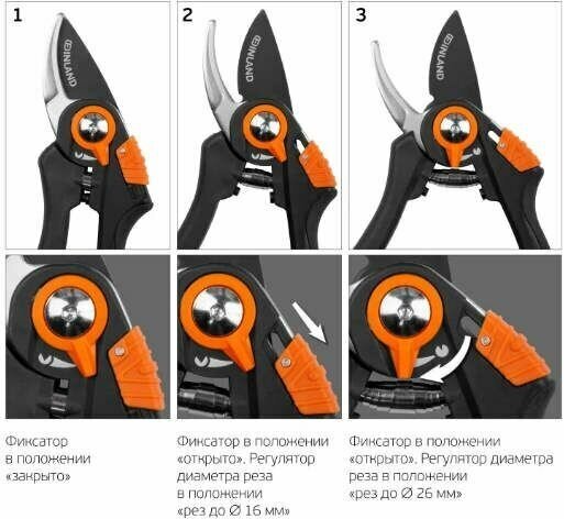 Лезвия секатора для сада выполнены из высокоуглеродистой стали с antistick-покрытием, долго не тупятся, обеспечивают легкий и чистый рез и позволяют использовать секаторы, как сучкорез, садовый нож, веткорез, кусторез, плоскорез, так и в качестве садовых ножниц. Эргономичная конструкция позволяет долго работать с ручным инструментом без усталости и дискомфорта.