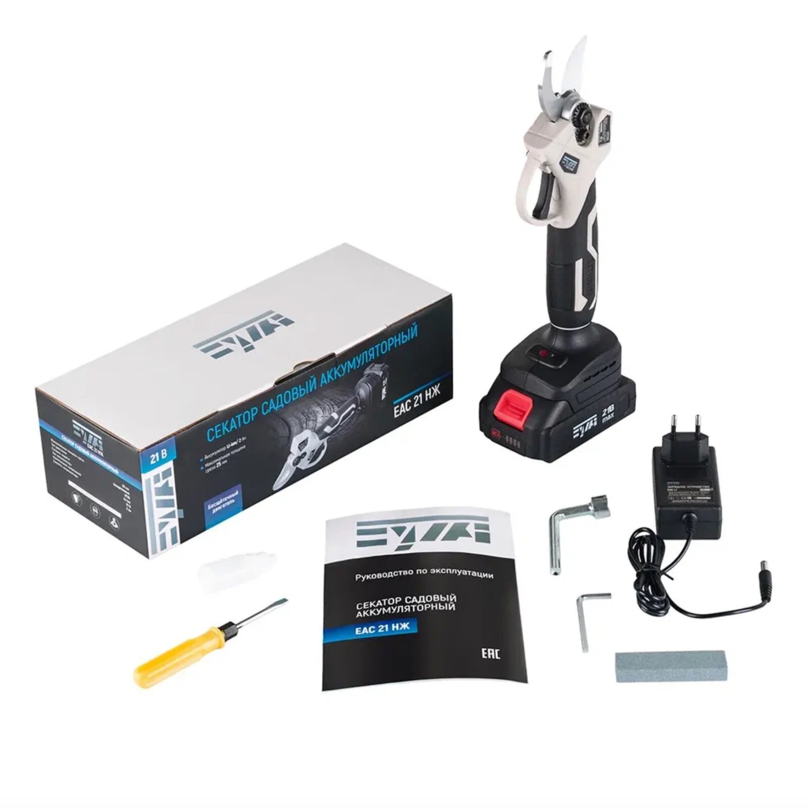 Секатор EWA ЕАС-21-НЖ позволяет легко и быстро обрезать ветки диаметром до 25 мм, что делает его отличным выбором для любых садовых работ. В комплекте с инструментом идет аккумулятор и зарядное устройство, что обеспечивает максимальное удобство использования. Единая аккумуляторная система позволяет использовать один и тот же аккумулятор для других инструментов серии, что существенно экономит время и ресурсы.