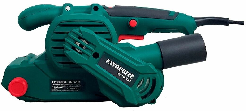 Ленточная шлифовальная машина Favourite BS-76/457, 76x457, 800 Вт, 120-380м/мин Лентошлифовальная машина FAVOURITE BS 76/457 производит быструю и эффективную черновую обработку поверхностей любого материала. С ее помощью легко зачищать металлические изделия, выравнивать деревянные изделия, снимать краску со стен, затачивать инструмент. - Регулировка скорости движения ленты позволяет подбирать оптимальный режим. - Система пылеудаления дает возможность поддерживать чистоту на рабочем месте. - Обрезиненная рукоять обеспечивает надежный хват. Технические характеристики FAVOURITE BS 76/457 Мощность, Вт: 800 Напряжение, В: 220 Ширина ленты, мм: 76 Длина ленты, мм: 457 Скорость движения ленты, м/мин: 120-380 Диаметр патрубка пылесоса, мм: 38 Плавный пуск: нет Поддержание постоянных оборотов под нагрузкой: нет Тип двигателя: щеточный Рабочая поверхность, мм: 76 Возможность подключения к пылесосу: есть Защита от перегрева двигателя: есть Длина кабеля, м: 2