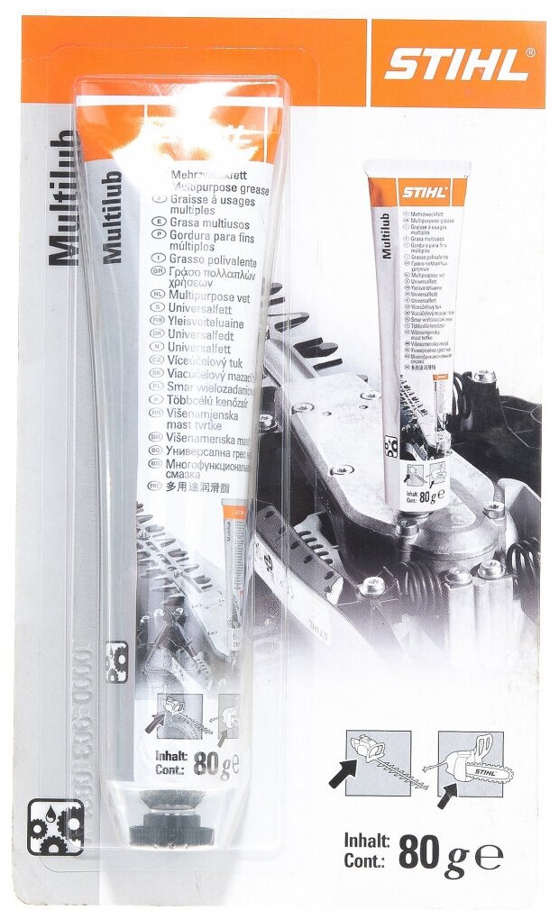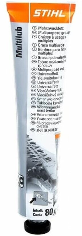 Универсальная консистентная смазка марки STIHL обеспечивает полноценный уход за внутренними рабочими узлами (трансмиссия, редуктор, подшипники, шестеренки, привод и пр.). Используется с садовой техникой и инструментом. Смазка густой консистенции снижает трение между деталями и бережет их от износа, снижает количество трещин. Защищает от коррозии, увеличивает срок службы техники. Выпускается в тубе 80 грамм.