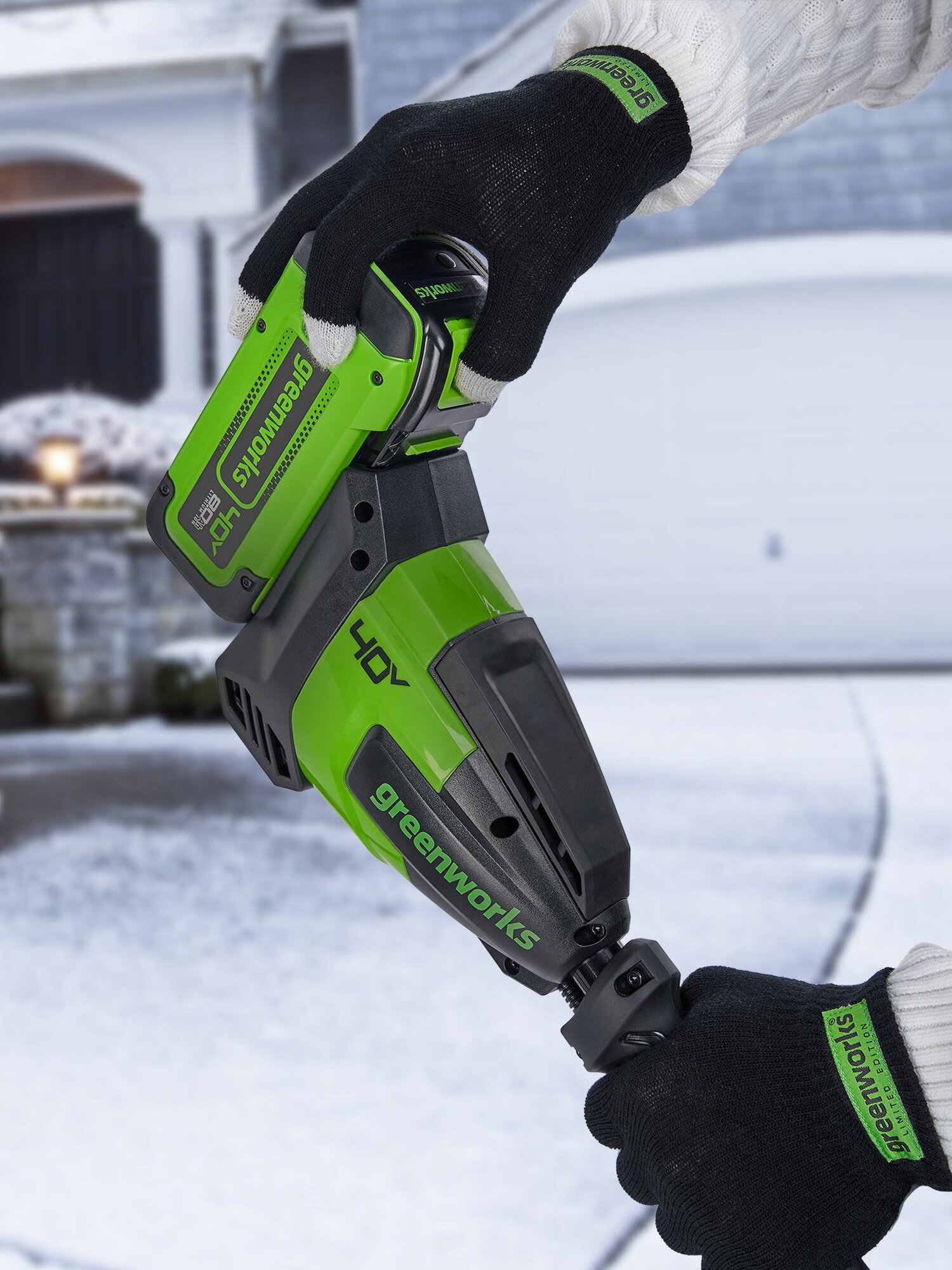 Устройство работает от аккумуляторной батареи, совместимой с 50+ моделями инновационного садового инструмента платформы Greenworks 40V;