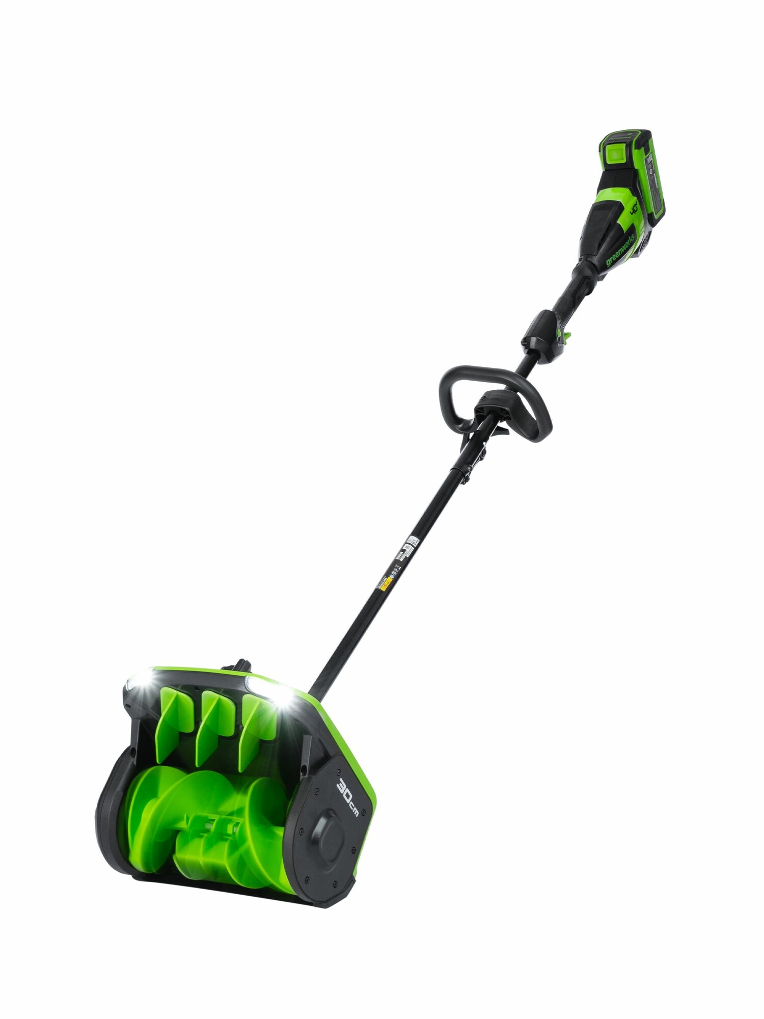 Снегоуборщик аккумуляторный Greenworks GD40SS2 Арт. 2603107UB, 40V, 30 см, с регулируемым направлением выброса, бесщеточный, с 1хАКБ 4 Ач и ЗУ.