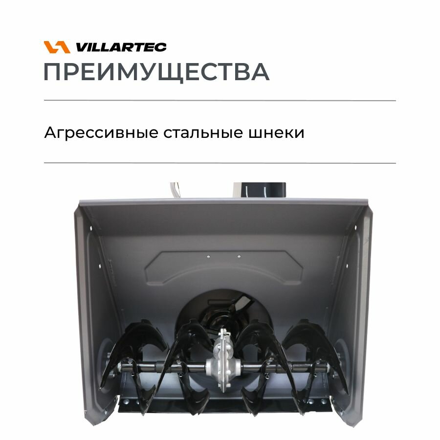Снегоуборщик бензиновый VILLARTEC WB5561E предназначен для уборки приусадебной территории, а также небольших стоянок и парковок. Благодаря наличию металлического зубчатого шнека изделие эффективно справляется как со свежевыпавшим, так и подмерзшим снегом.