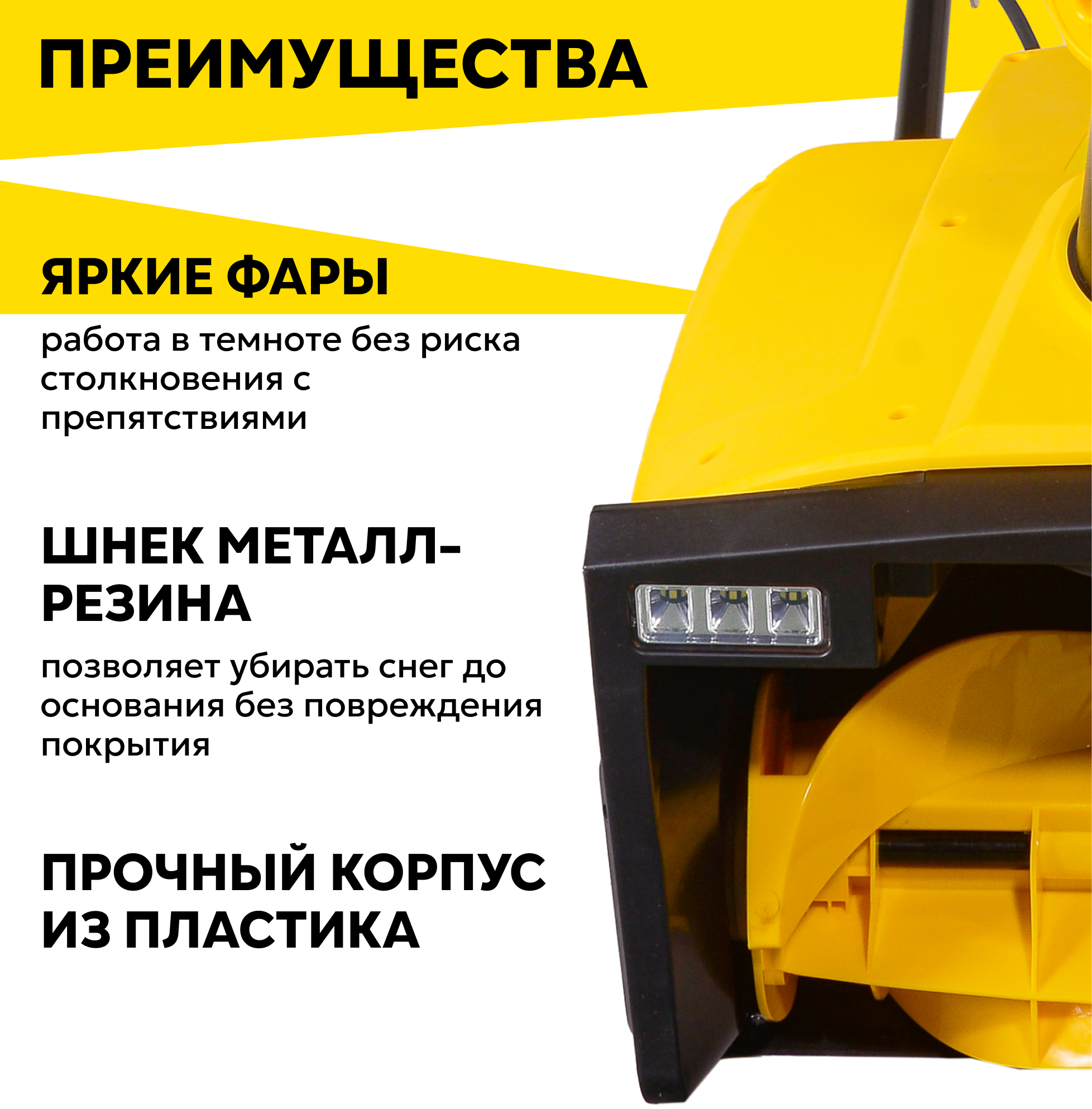 - Компактные размеры позволяют использовать снегоуборщик на небольших участках.
