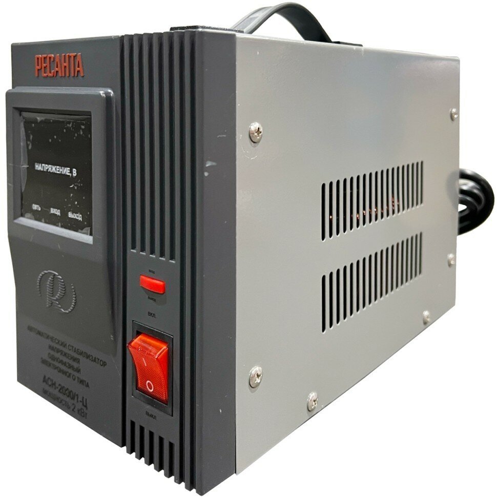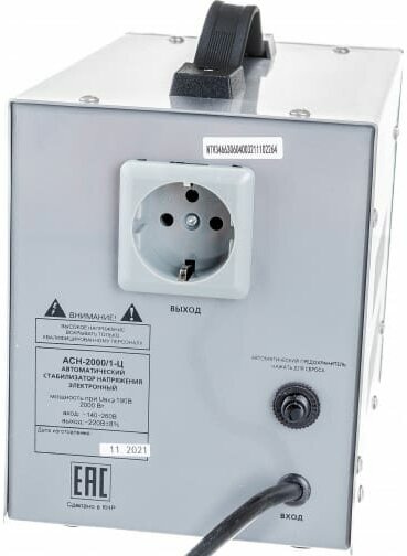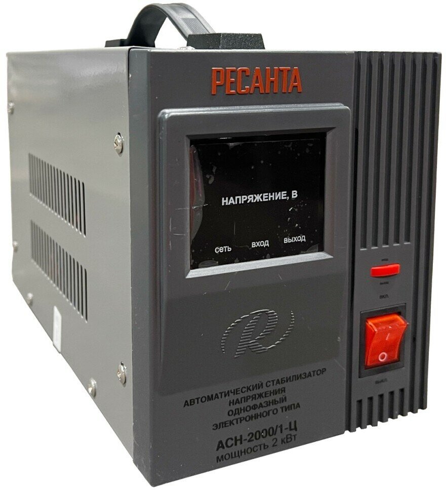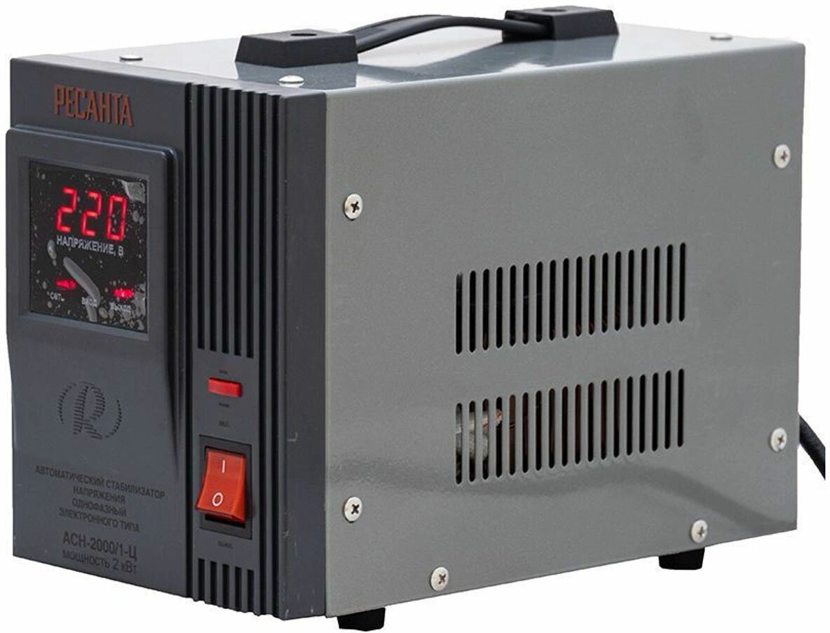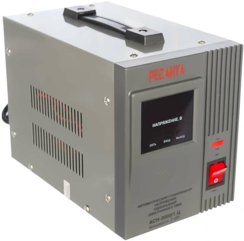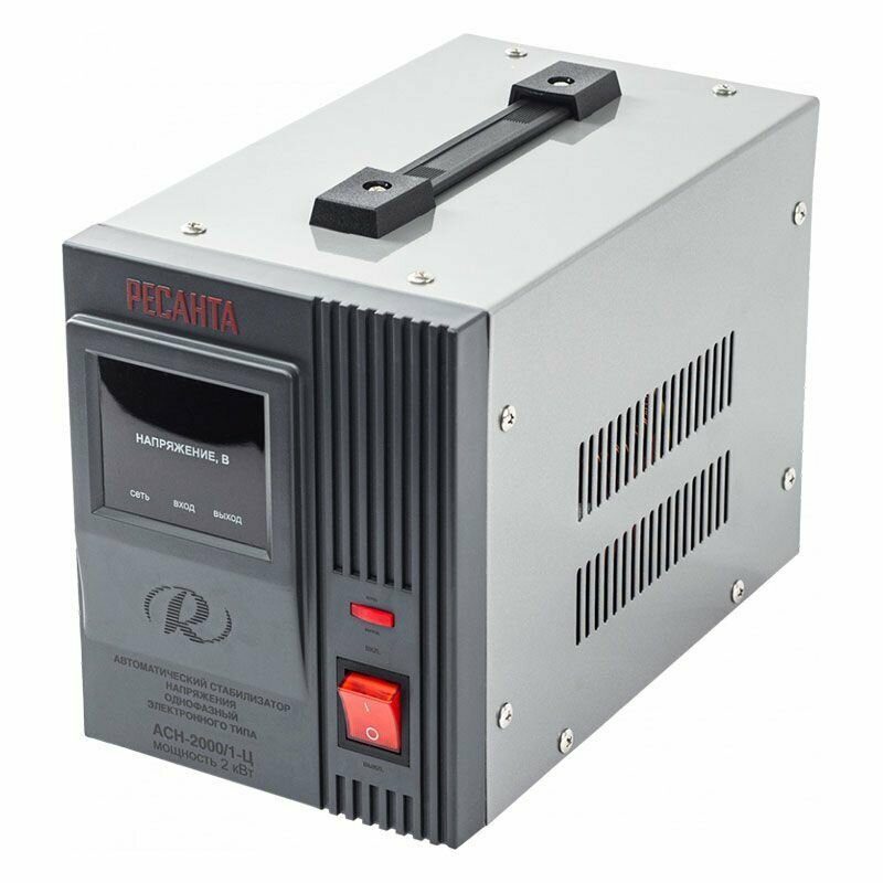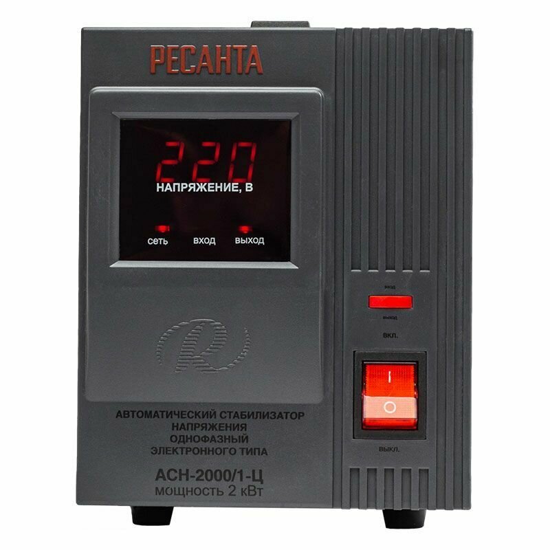 Стабилизатор напряжения Ресанта АСН 2000/1-Ц релейного типа предназначен для выравнивания входного напряжения и защиты приборов от перепадов напряжения с суммарной мощностью до 2 кВт. Работает с напряжением 220В с точностью до +/-8%. Устройство оснащено фильтрами сетевых помех, предотвращающими искажение частотной синусоиды, микропроцессорным управлением и цифровым индикатором напряжения, на котором отображаются параметры напряжения. Превышение пределов поддерживаемого входного напряжения автоматически отключает подачу питания. Прочный корпус защищает внутренние узлы аппарата от повреждений. Данный стабилизатор может обеспечивать стабильным питанием - телевизор, ресивер, DVD проигрыватель, кассовый аппарат, газовый котел. Принцип действия Регулировка напряжения происходит за счет переключения обмоток на трансформаторе при помощи реле. Поэтому данный вид стабилизаторов называется "релейный". Катушка в данном стабилизаторе разделена отводами на 4 части, каждый отвод подсоединён к своему реле (разница между реле до 30В). Регулировка происходит как бы перепрыгиванием с отвода на отвод, пропуская часть витков (осуществляется ступенчатая регулировка), за счёт этого погрешность выходного напряжения в данном стабилизаторе возрастает до 8%, т. е. 17,6В. Т. к. регулировка в данном стабилизаторе осуществляется путём переключения реле (реле имеет принцип выключателя), за счёт этого время регулировки в данном стабилизаторе минимально и составляет 20-35 мсек, т. е. менее 1 секунды. Стабилизатор релейного типа за счет своего принципа работы позволяет моментально реагировать даже на самые значительные и частые изменения напряжения в сети и предотвратить выход оборудования из строя. Номинальная мощность при входящем напряжении 190В составляет 2000Вт. Количество фаз = 1. Защита стабилизатора - Защита от выхода напряжения за пределы рабочего диапазона стабилизатора (рабочий диапазон стабилизатора от 140 до 260 В). - Термозащита (тепловая защита) позволяет выключиться стабилизатору при превышении его мощности нагрузки над мощностью самого устройства. Преимущества стабилизатора - Встроенные фильтры входных и выходных частотных помех; - Автоматическое отключение питания при превышении предельного значения напряжения; - Широкий диапазон поддерживаемого входного напряжения; - При кратковременных перегрузках прибор не выключается; - Автоматическое включение при выравнивании напряжения в пределах рабочего диапазона; - Микропроцессорное управление; - Цифровой дисплей; - Эргономичный и компактный; - Высокая скорость срабатывания защиты; - Наличие кнопки смены отображения исходящего напряжения на входящее; - Время регулирования напряжения минимально и составляет менее 15 мсек. т. е. менее 1 секунды; - №1 на рынке России. В наличии