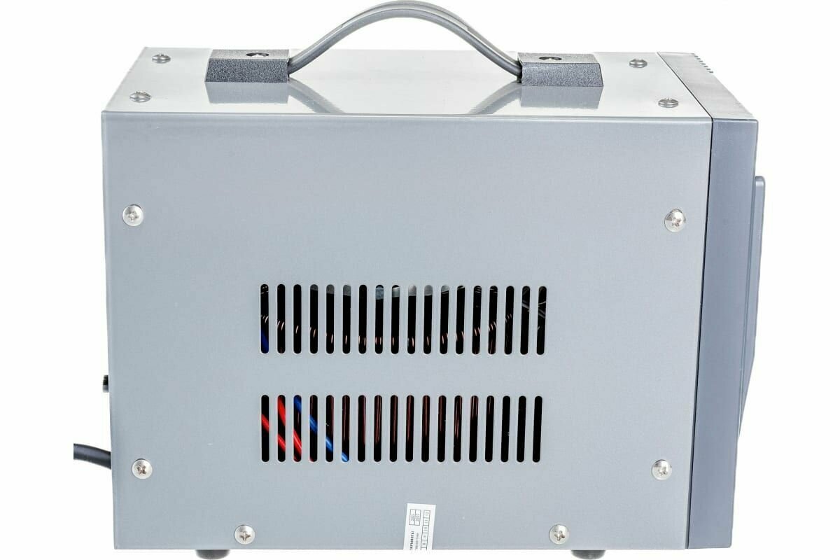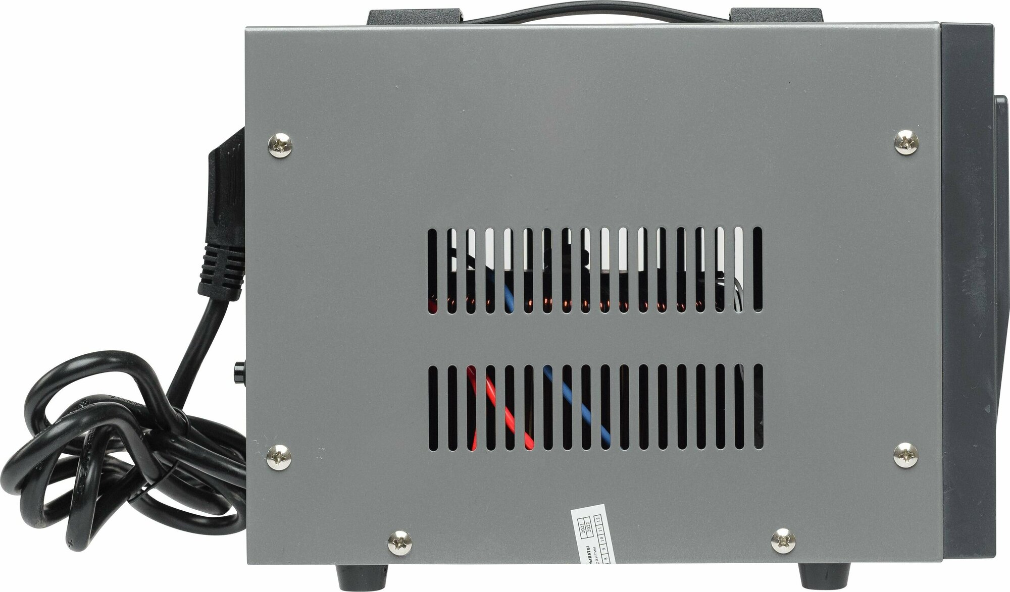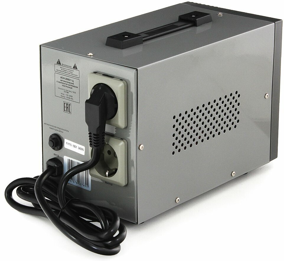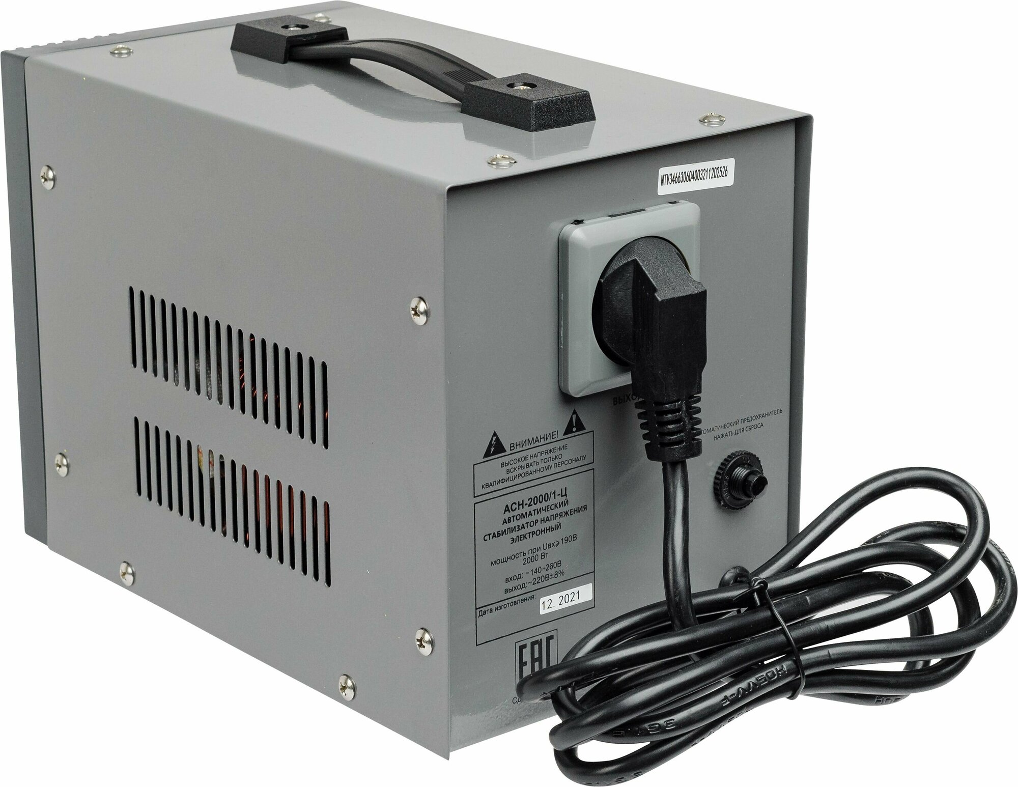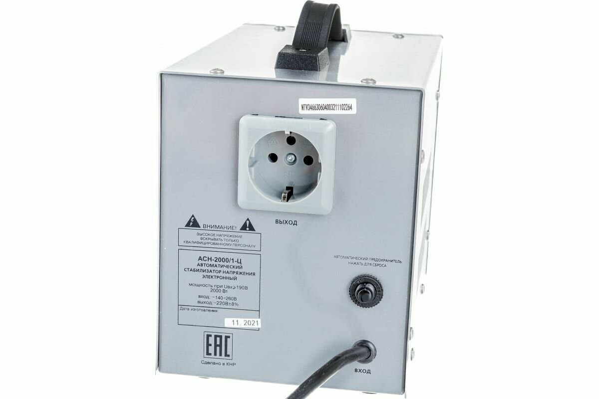 Стабилизатор напряжения Ресанта АСН 2000/1-Ц релейного типа предназначен для выравнивания входного напряжения и защиты приборов от перепадов напряжения с суммарной мощностью до 2 кВт. Работает с напряжением 220В с точностью до +/-8%. Устройство оснащено фильтрами сетевых помех, предотвращающими искажение частотной синусоиды, микропроцессорным управлением и цифровым индикатором напряжения, на котором отображаются параметры напряжения. Превышение пределов поддерживаемого входного напряжения автоматически отключает подачу питания. Прочный корпус защищает внутренние узлы аппарата от повреждений. Данный стабилизатор может обеспечивать стабильным питанием - телевизор, ресивер, DVD проигрыватель, кассовый аппарат, газовый котел. Принцип действия Регулировка напряжения происходит за счет переключения обмоток на трансформаторе при помощи реле. Поэтому данный вид стабилизаторов называется "релейный". Катушка в данном стабилизаторе разделена отводами на 4 части, каждый отвод подсоединён к своему реле (разница между реле до 30В). Регулировка происходит как бы перепрыгиванием с отвода на отвод, пропуская часть витков (осуществляется ступенчатая регулировка), за счёт этого погрешность выходного напряжения в данном стабилизаторе возрастает до 8%, т. е. 17,6В. Т. к. регулировка в данном стабилизаторе осуществляется путём переключения реле (реле имеет принцип выключателя), за счёт этого время регулировки в данном стабилизаторе минимально и составляет 20-35 мсек, т. е. менее 1 секунды. Стабилизатор релейного типа за счет своего принципа работы позволяет моментально реагировать даже на самые значительные и частые изменения напряжения в сети и предотвратить выход оборудования из строя. Номинальная мощность при входящем напряжении 190В составляет 2000Вт. Количество фаз = 1. Защита стабилизатора - Защита от выхода напряжения за пределы рабочего диапазона стабилизатора (рабочий диапазон стабилизатора от 140 до 260 В). - Термозащита (тепловая защита) позволяет выключиться стабилизатору при превышении его мощности нагрузки над мощностью самого устройства. Преимущества стабилизатора - Встроенные фильтры входных и выходных частотных помех; - Автоматическое отключение питания при превышении предельного значения напряжения; - Широкий диапазон поддерживаемого входного напряжения; - При кратковременных перегрузках прибор не выключается; - Автоматическое включение при выравнивании напряжения в пределах рабочего диапазона; - Микропроцессорное управление; - Цифровой дисплей; - Эргономичный и компактный; - Высокая скорость срабатывания защиты; - Наличие кнопки смены отображения исходящего напряжения на входящее; - Время регулирования напряжения минимально и составляет менее 15 мсек. т. е. менее 1 секунды; - №1 на рынке России. В наличии
