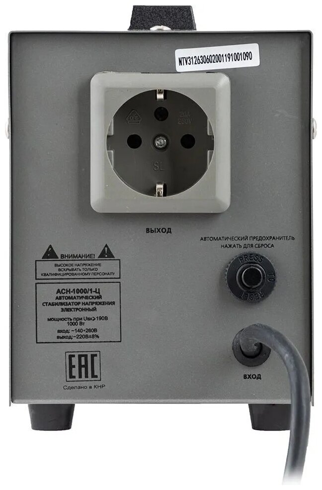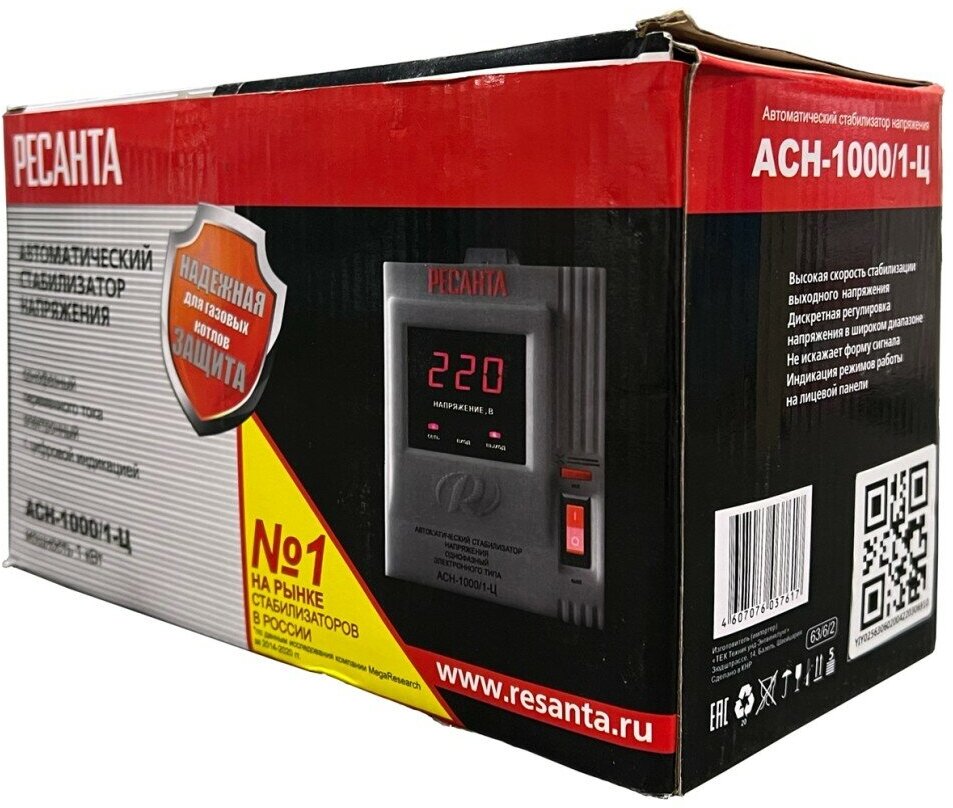Стабилизатор напряжения Ресанта АСН 1000/1-Ц предназначен для защиты от перепадов напряжения бытовых электроприборов с суммарной мощностью до1 кВт. Предусмотрены входной и выходной фильтры частотных помех - можно подключать высокоточные и чувствительные к качеству питания устройства. Автоматическое отключение нагрузки при превышении поддерживаемого напряжение происходит всего за 0.35 секунды.Вся информация на сайте о товарах носит справочный характер и не является публичной офертой в соответствии с пунктом 2 статьи 437 ГК РФ. Производитель оставляет за собой право изменять характеристики товара, его внешний вид и комплектность без предварительного уведомления продавца.